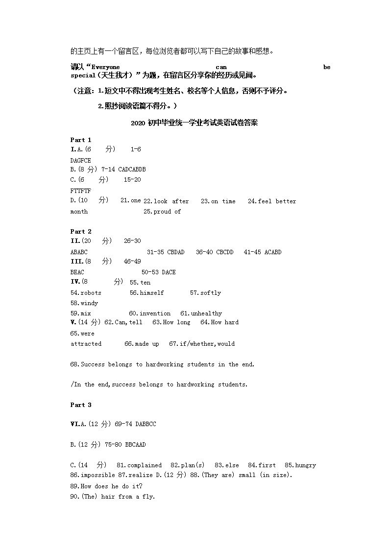 【文档名称】 2020年上海静安中考英语试题及答案(Word版).doc