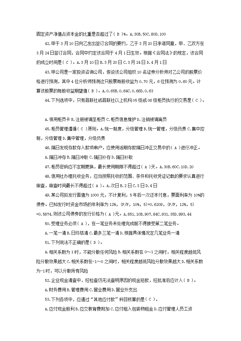 【文档名称】 安徽农村信用社招聘考试历年综合真题及答案(Word版).doc