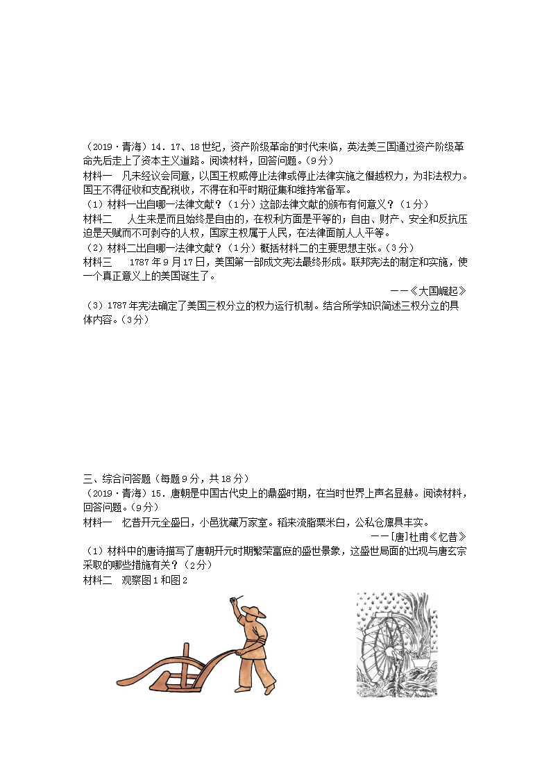 【文档名称】 2019年青海省中考历史真题及答案(Word版).doc
