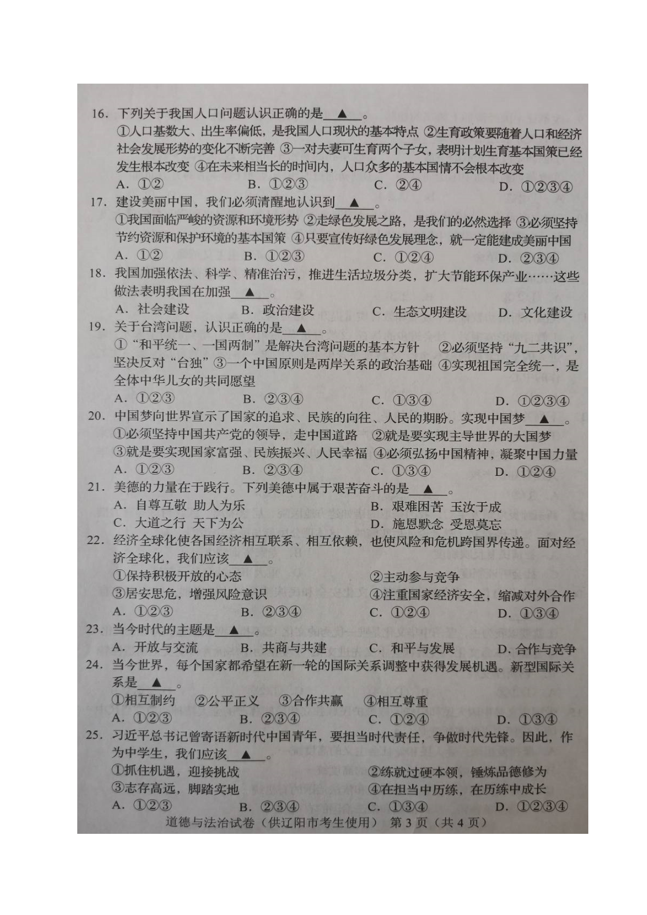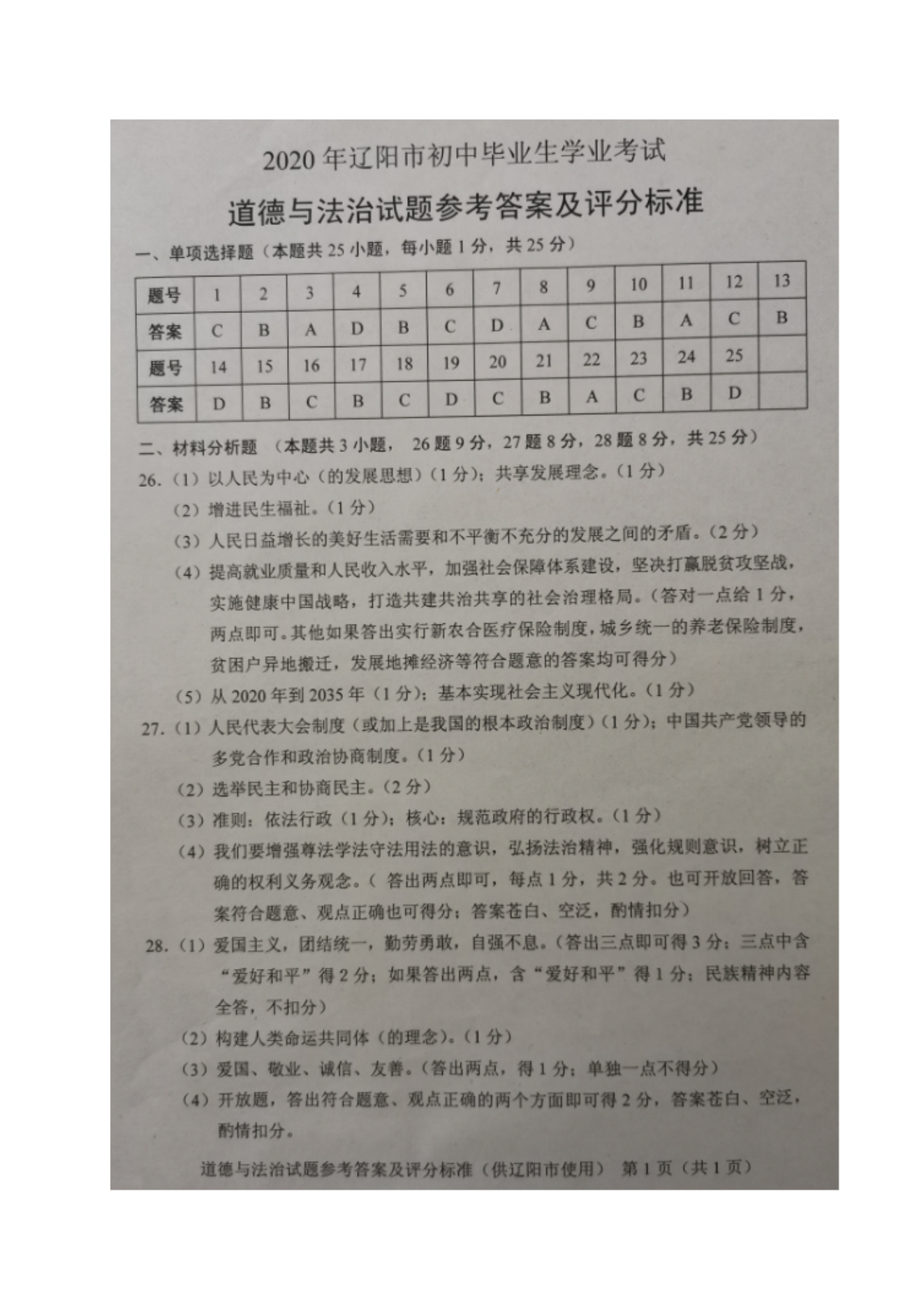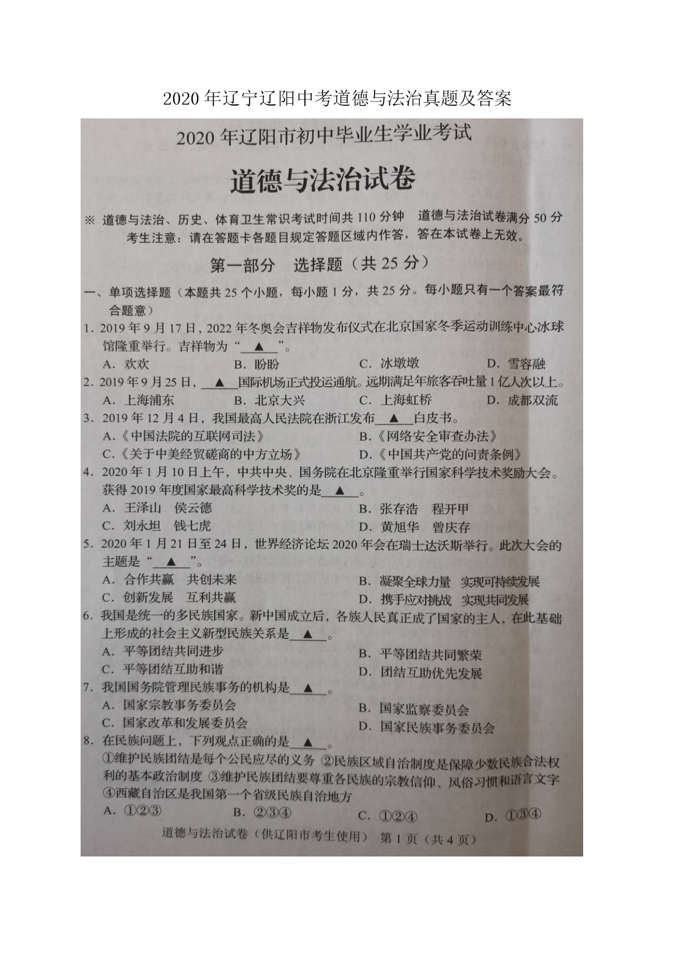【文档名称】 2020年辽宁辽阳中考道德与法治真题及答案(图片版).doc