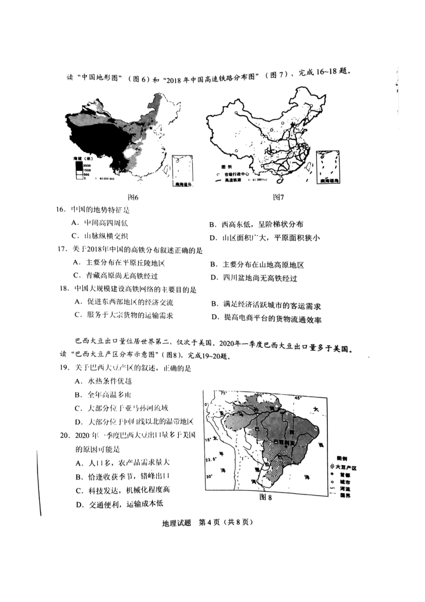 【文档名称】 2020广东汕尾中考地理真题及答案(图片版).doc