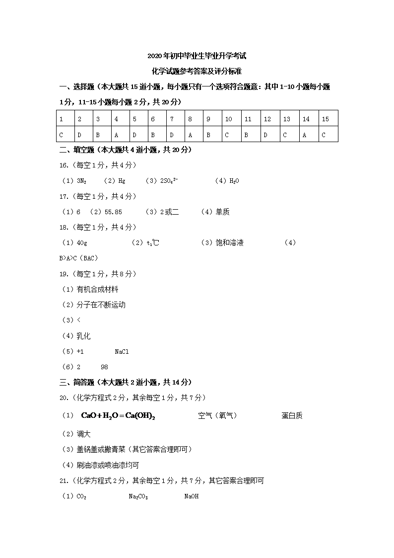 【文档预览】 无忧考网整理发布2020年辽宁营口中考化学真题及答案(Word版),前五页预览如下: