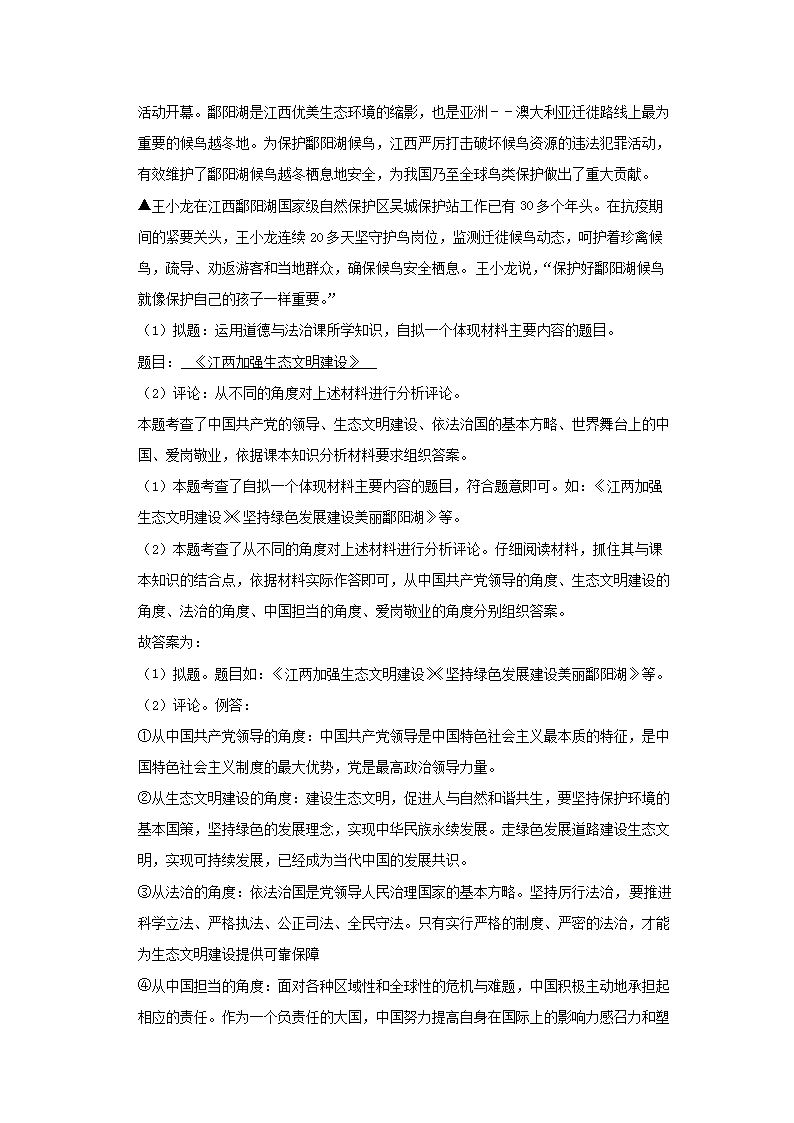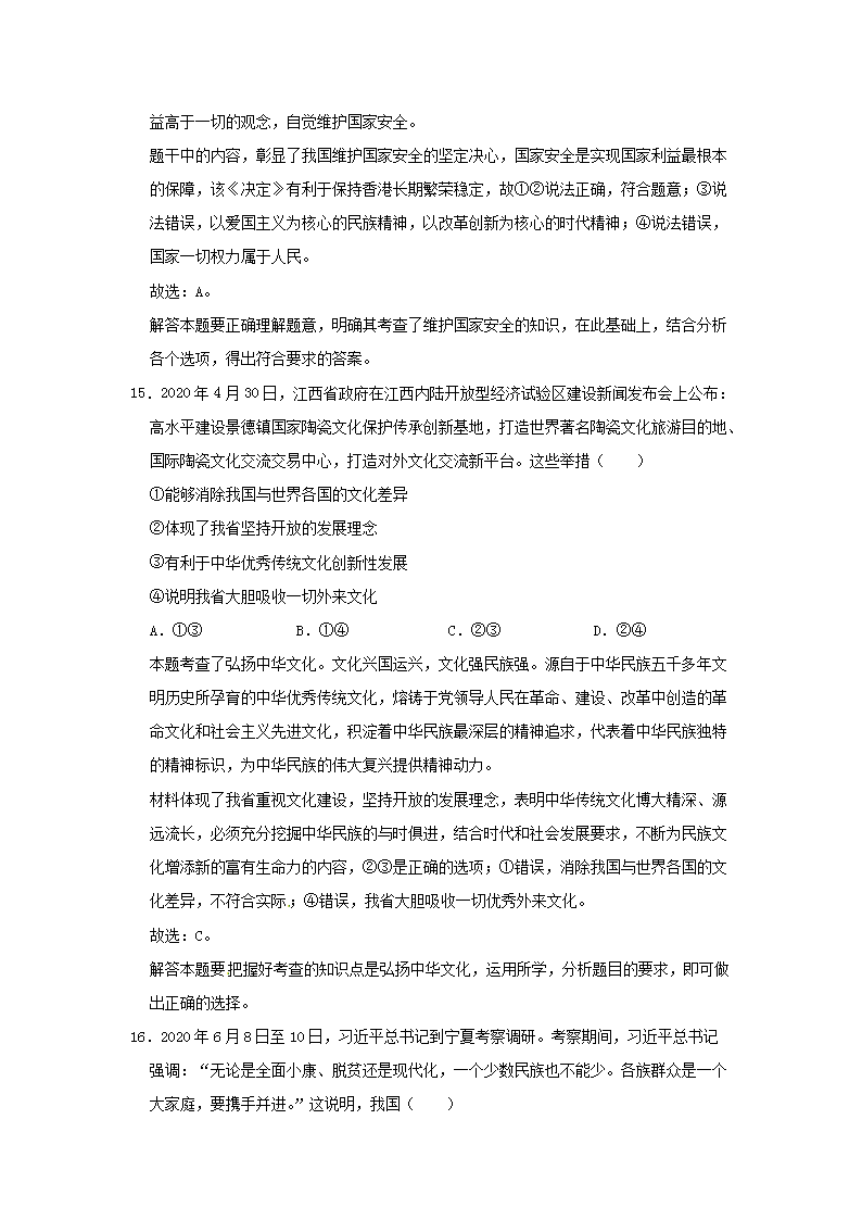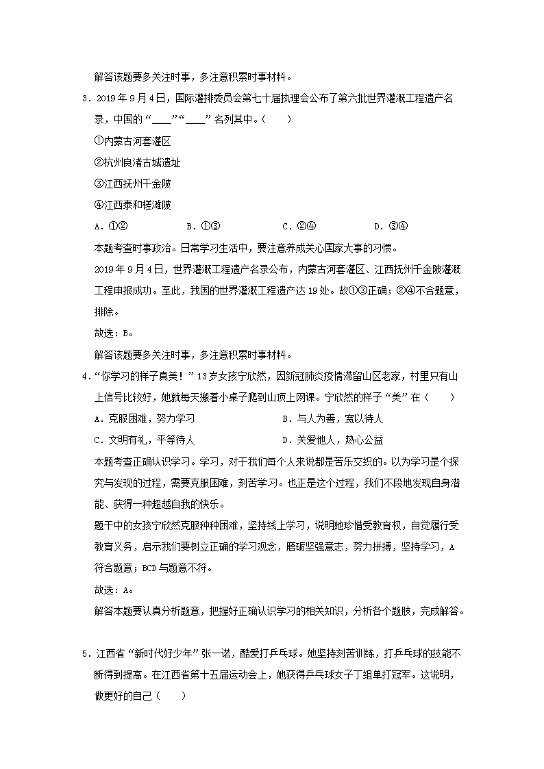 【文档名称】 2020年江西抚州中考政治试卷及答案(Word版).doc