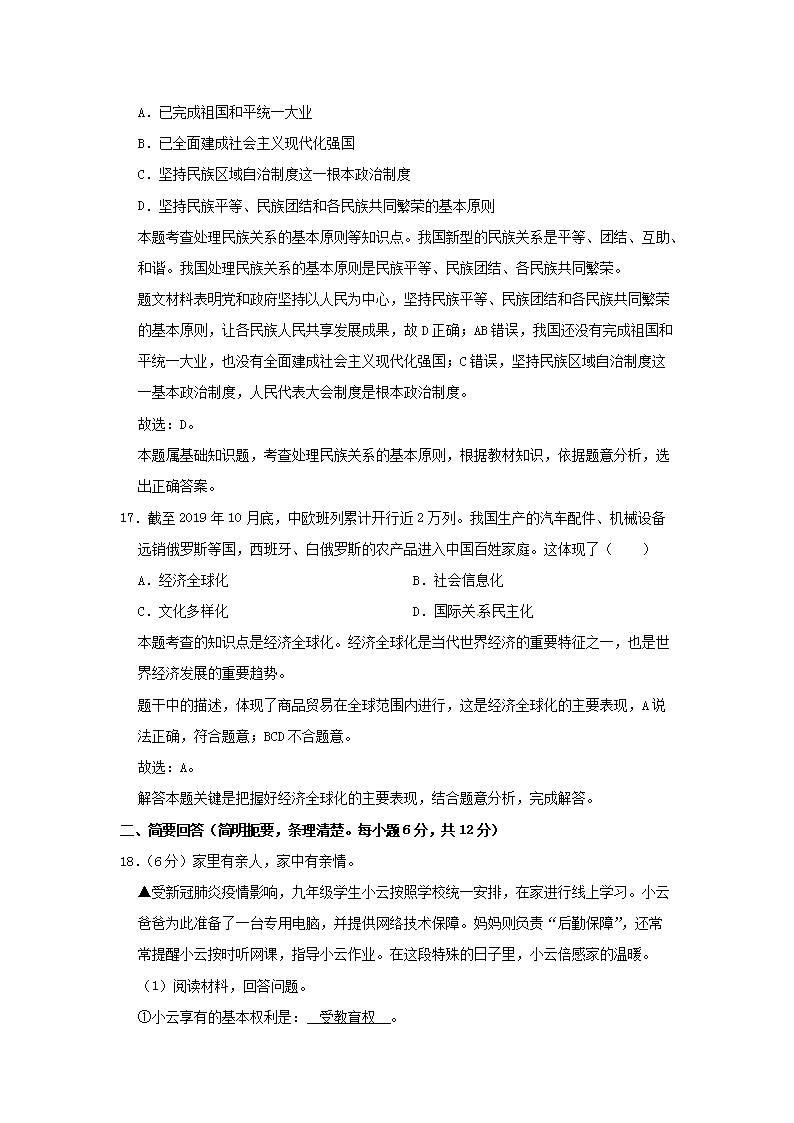 【文档预览】 无忧考网整理发布2020年江西赣州中考政治试卷及答案(Word版),前五页预览如下: