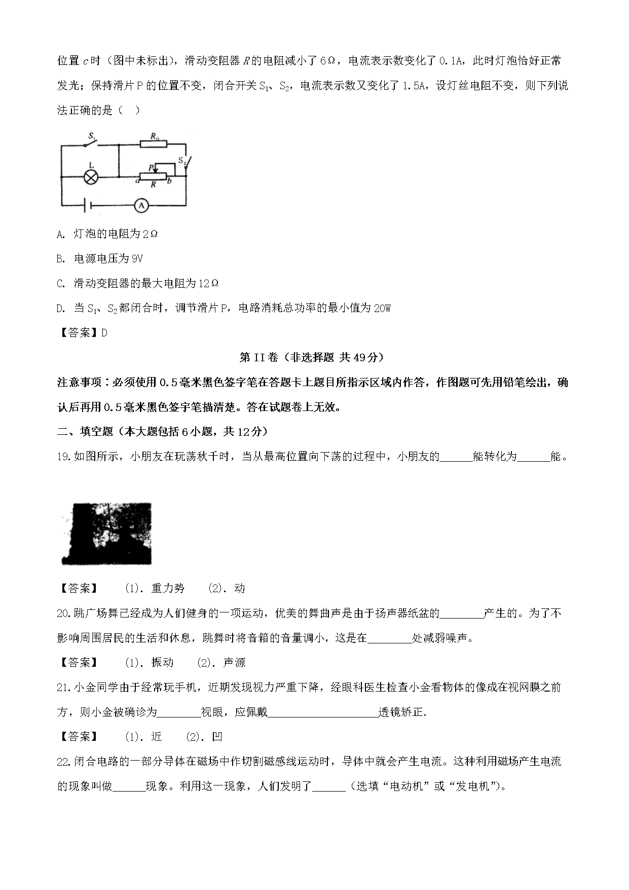 【文档名称】 2020年四川自贡中考物理真题及答案(Word版).doc