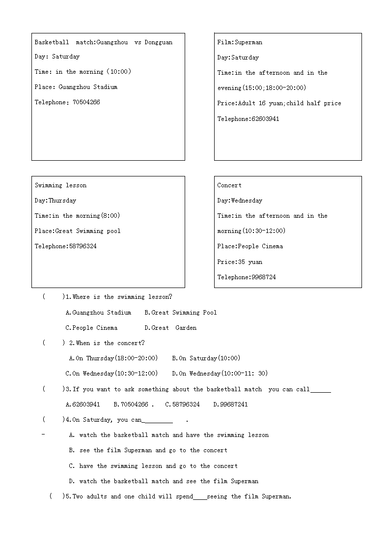 【文档预览】 无忧考网整理发布2016年广东东莞东华中学小升英语真题(Word版),前五页预览如下: