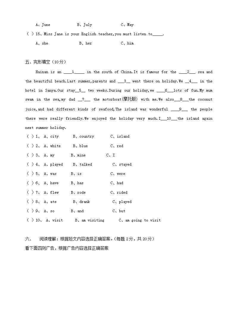 【文档名称】 2016年广东东莞东华中学小升英语真题(Word版).doc