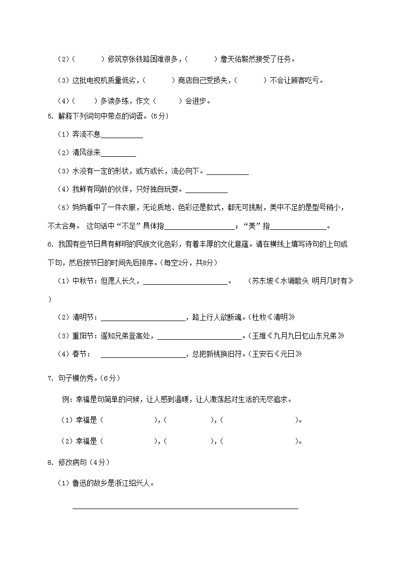 【文档预览】 无忧考网整理发布2019年江西小升初语文真题及答案(Word版),前五页预览如下: