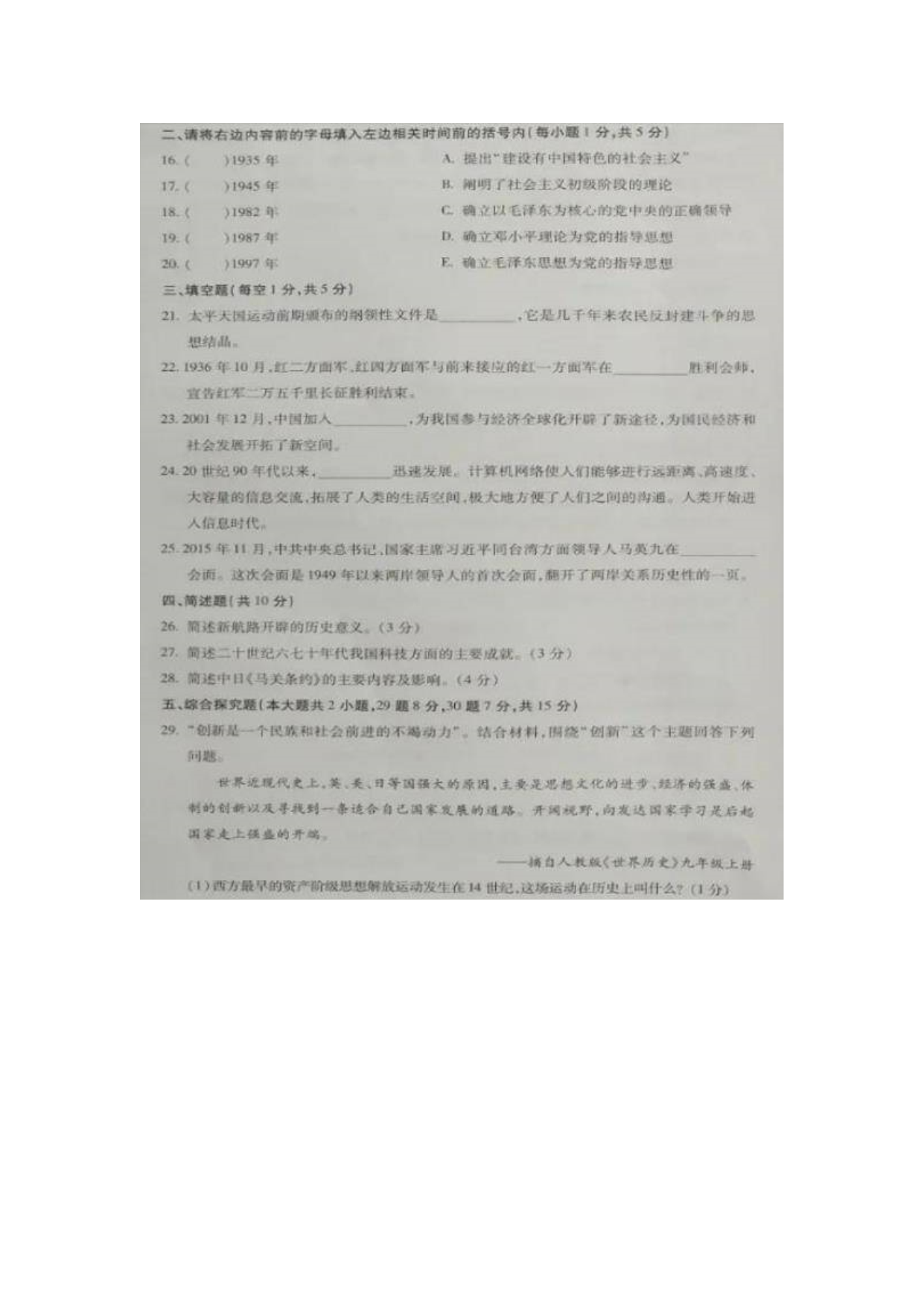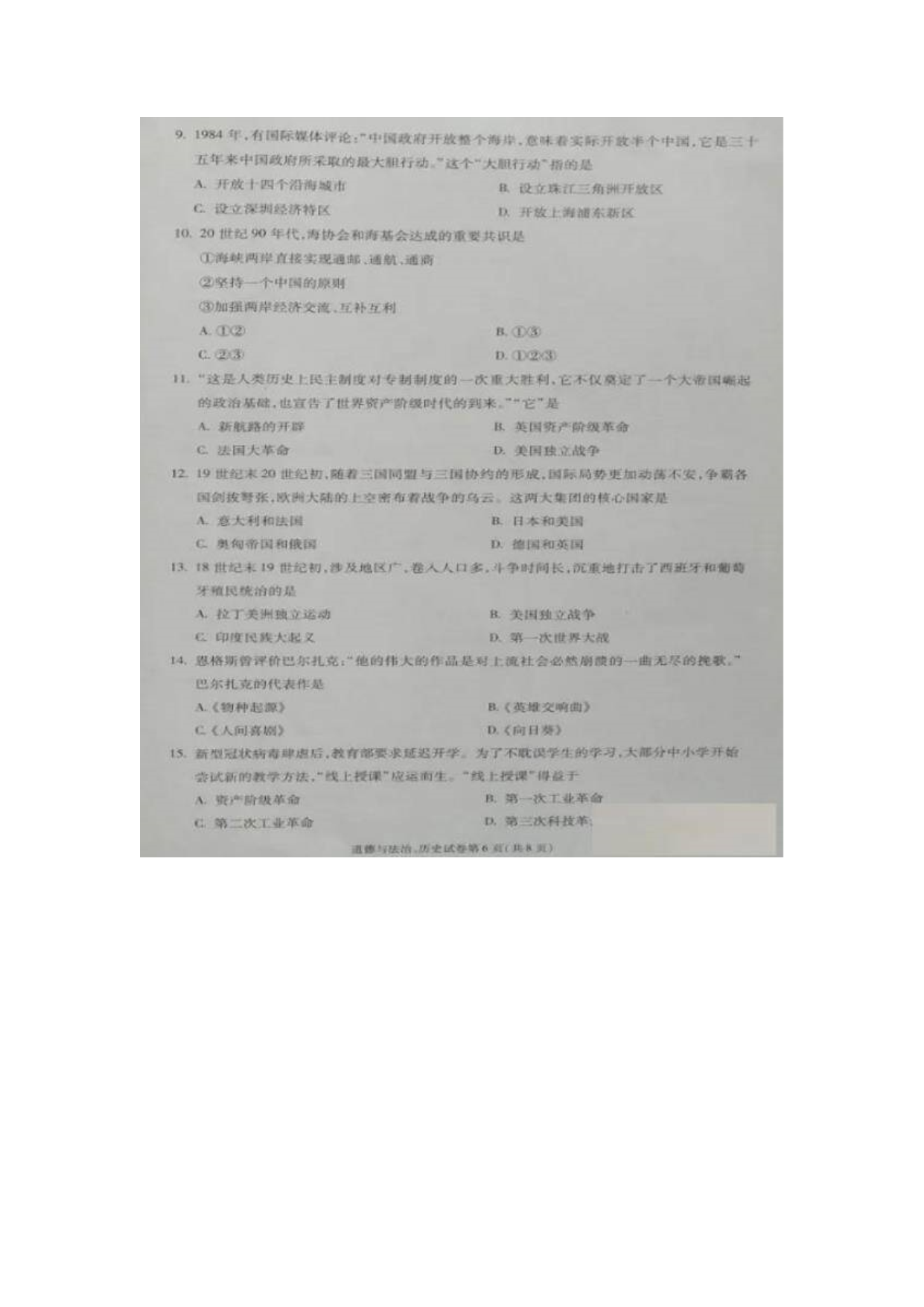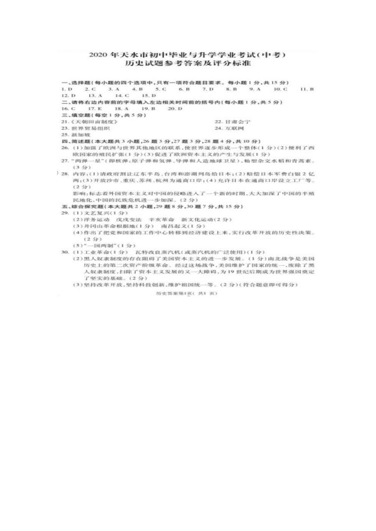 【文档名称】 2020年甘肃天水中考历史真题及答案(图片版).doc