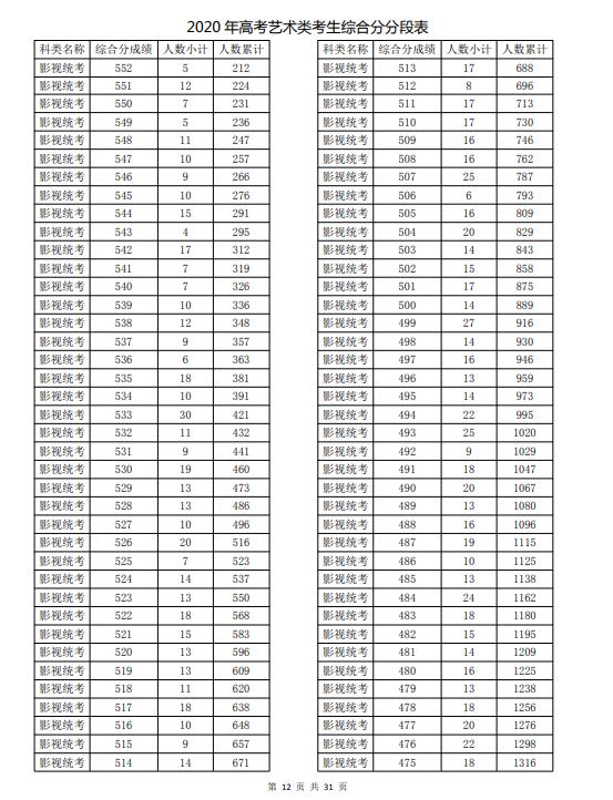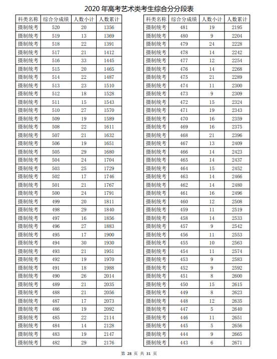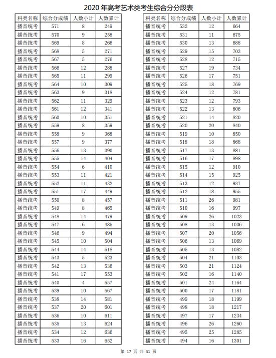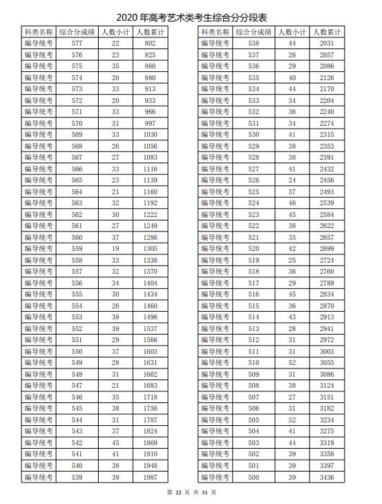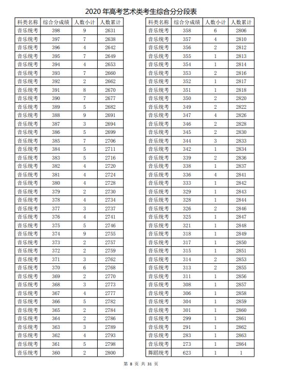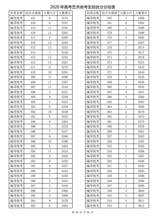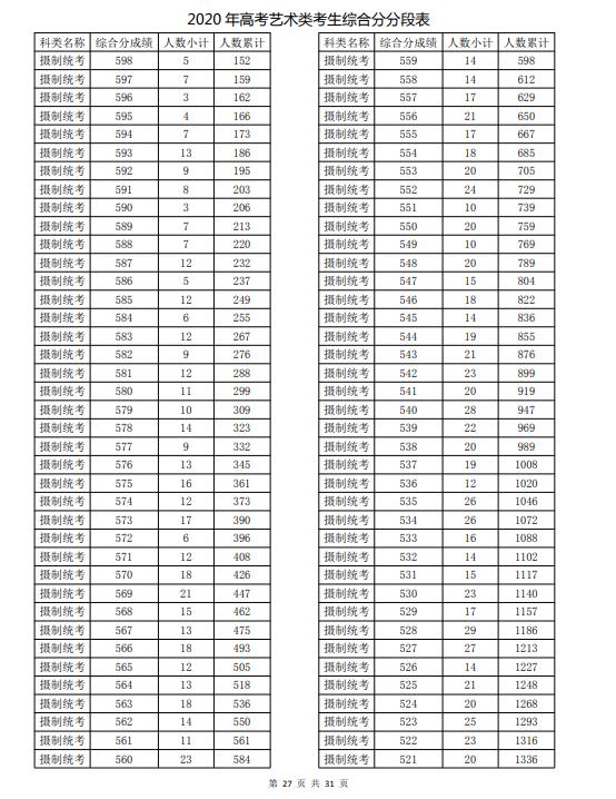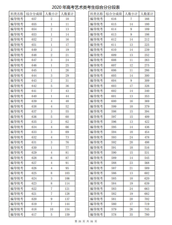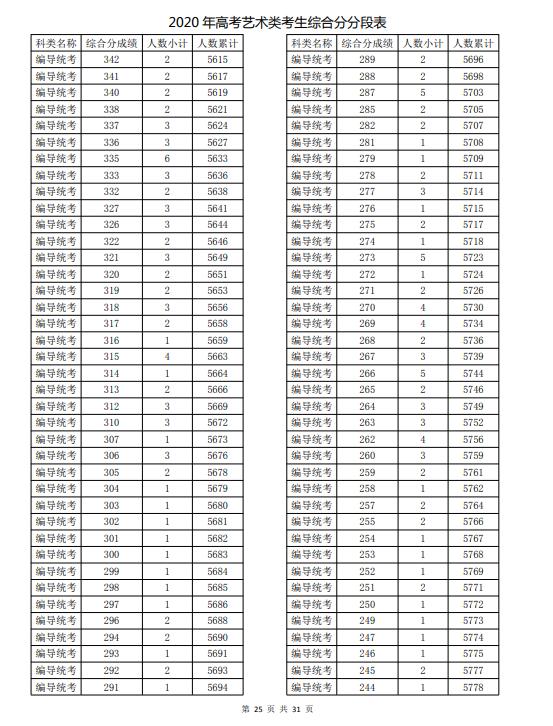 网从浙江省教育考试院了解到,2020年浙江高考艺术类考生综合分分段表已公布,为方便考生查阅,现将高考艺术类考生综合分分段表通知如下: