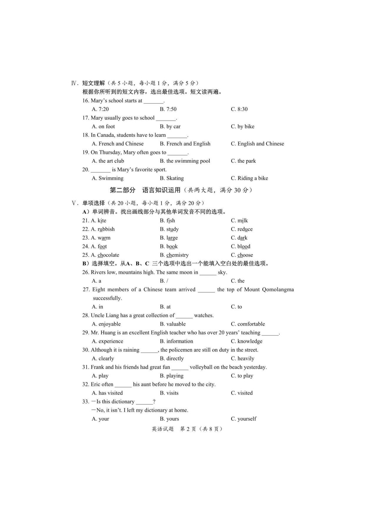 【文档预览】 无忧考网整理发布2020年海南省琼海市中考英语试题及答案(图片版),前五页预览如下: