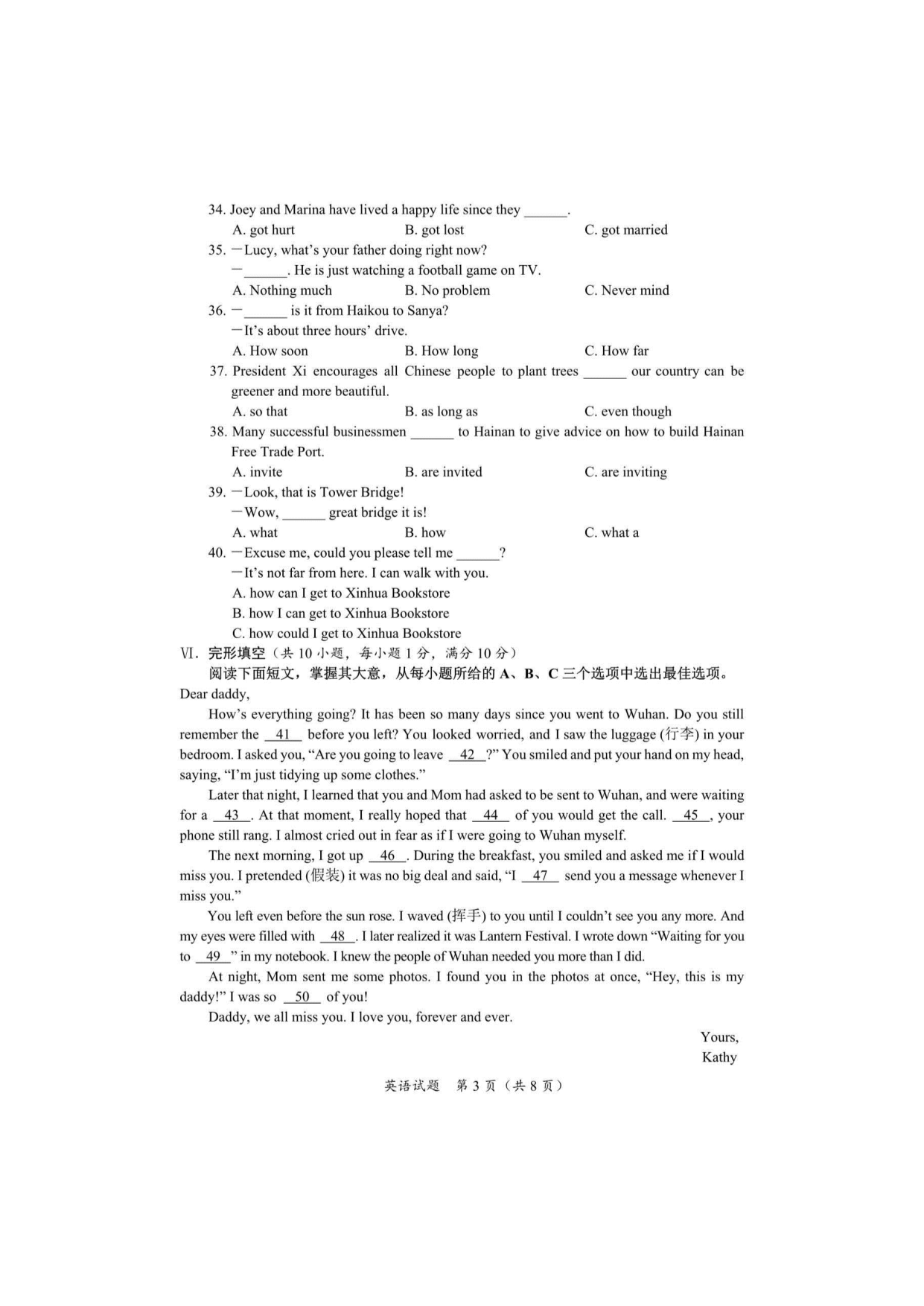 【文档名称】 2020年海南省文昌市中考英语试题及答案(图片版).doc