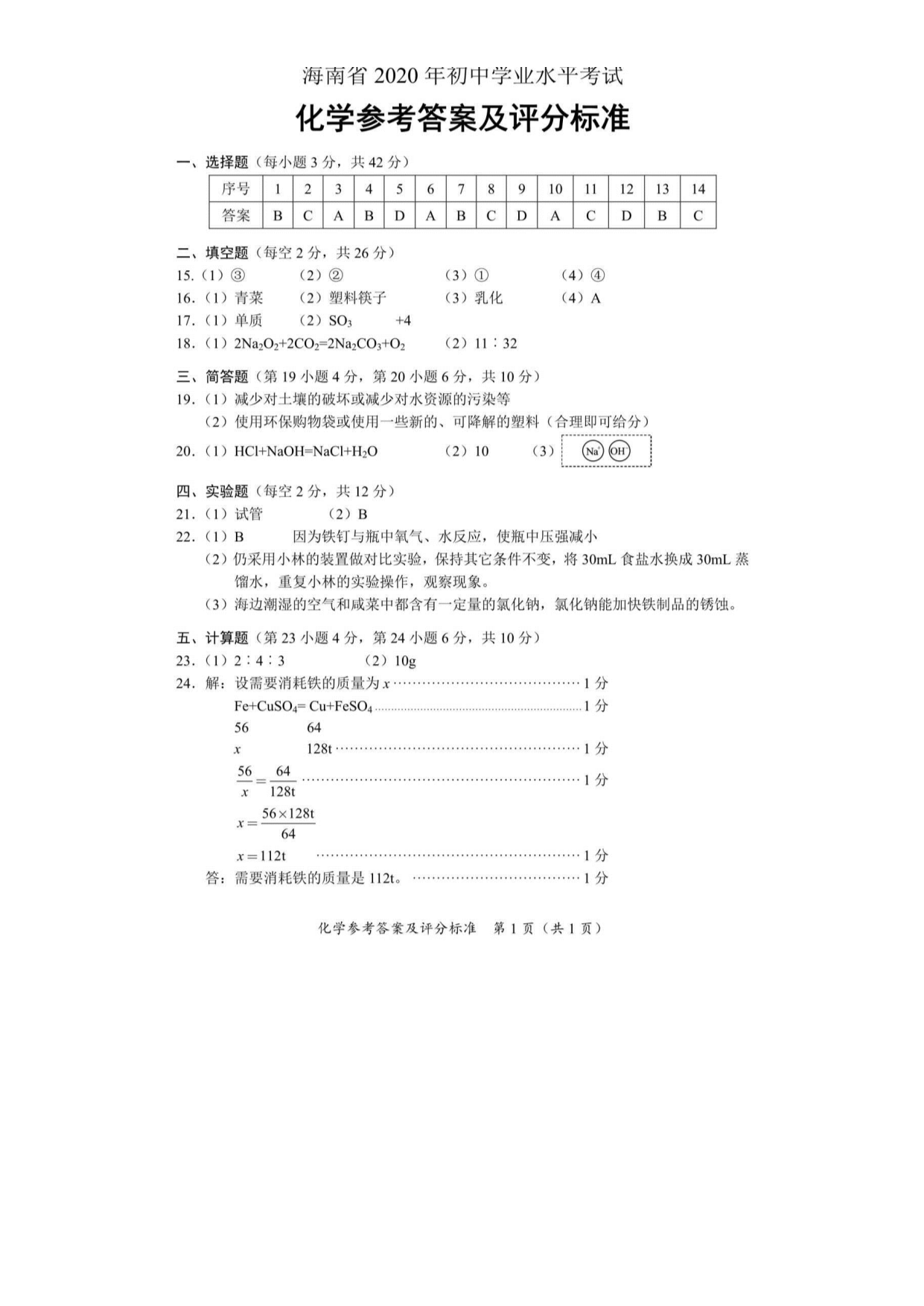 【文档名称】 2020年海南省五指山市中考化学试题及答案(图片版).doc
