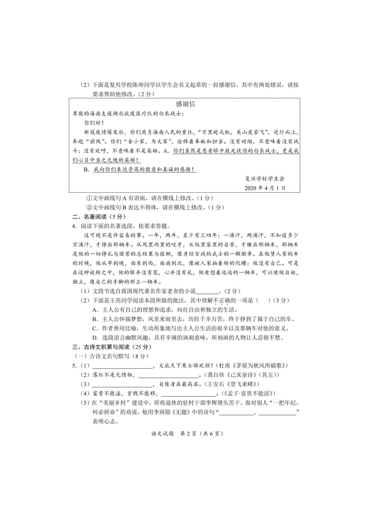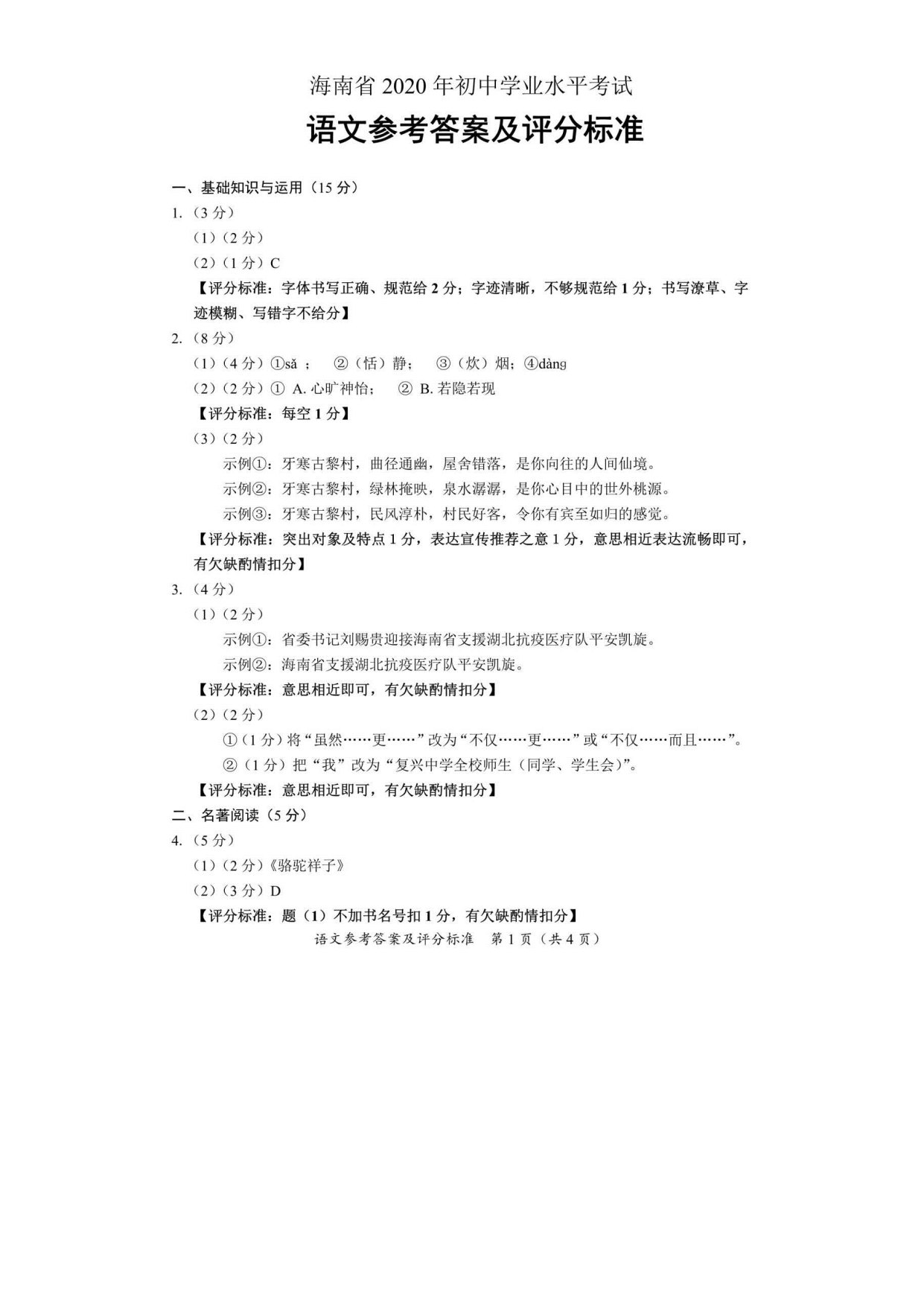 【文档名称】 2020年海南省海口市中考语文试题及答案(图片版).doc