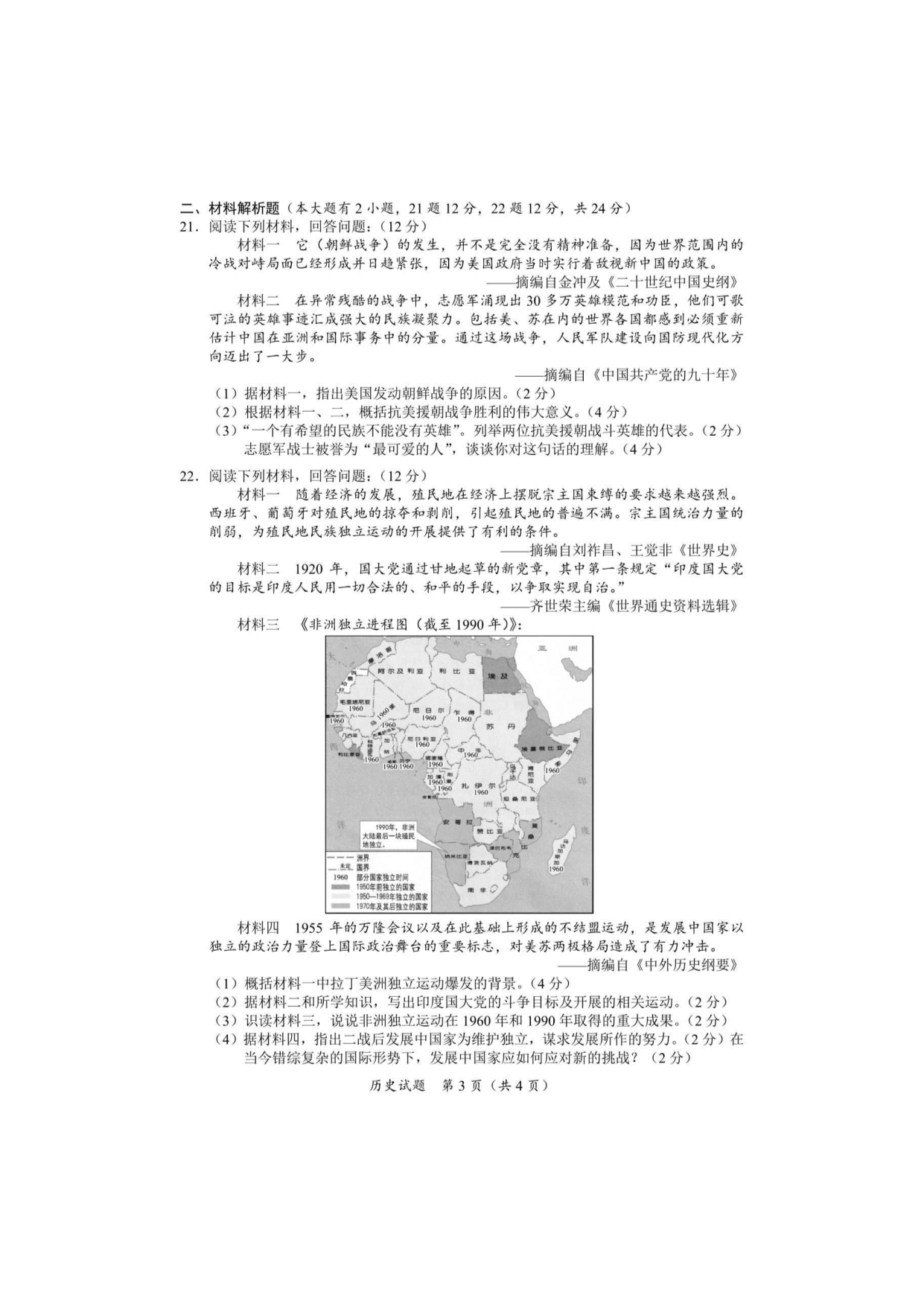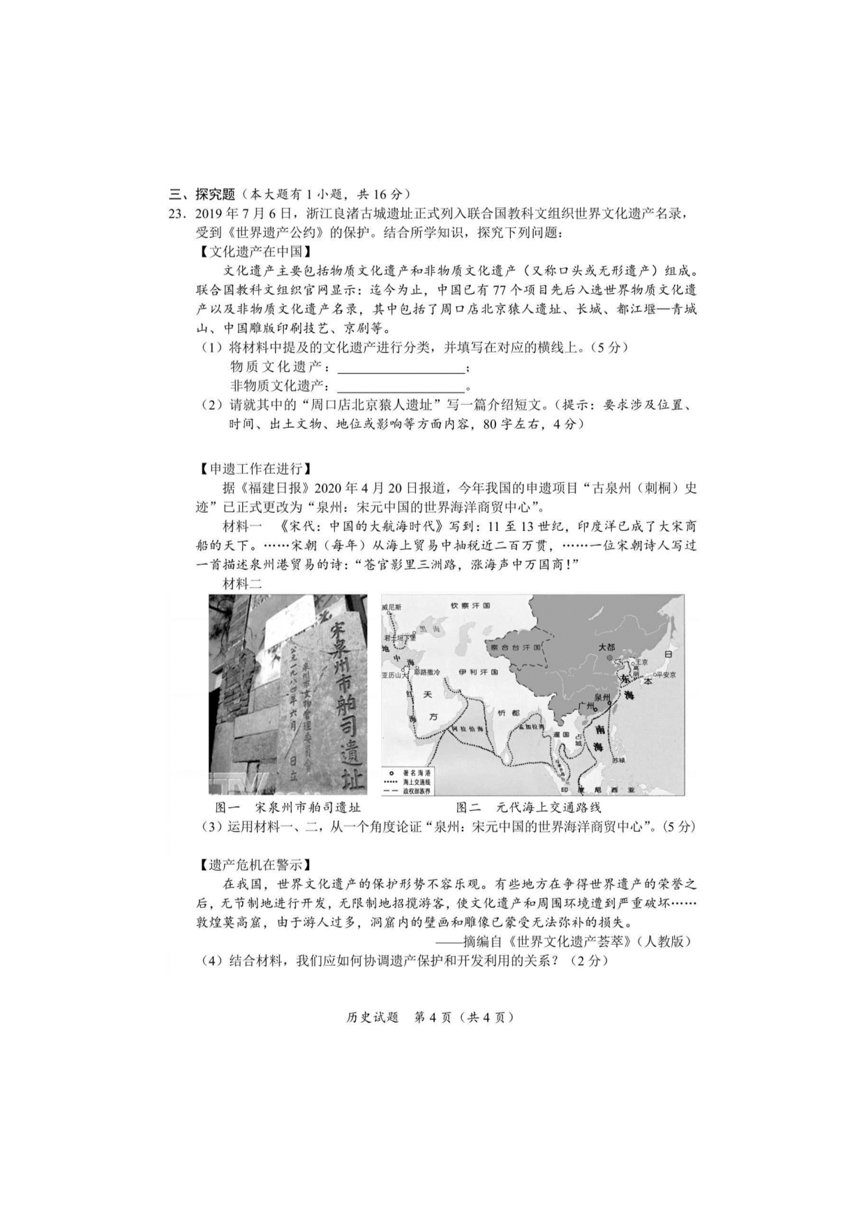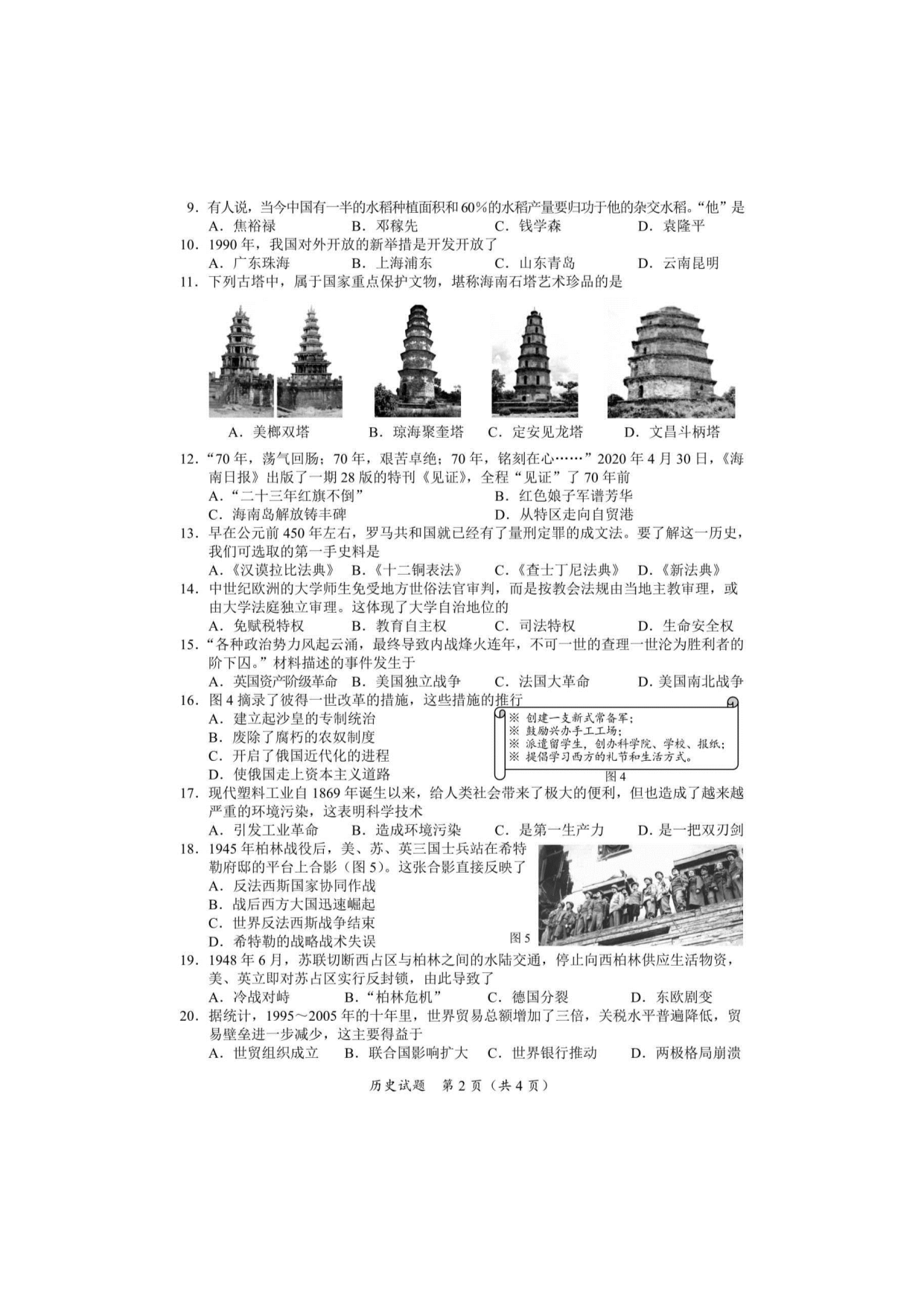 【文档名称】 2020年海南省三亚市中考历史试题及答案(图片版).doc