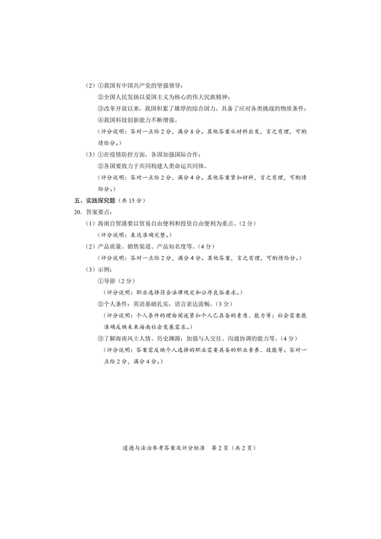【文档名称】 2020年海南省中考政治试题及答案(图片版).doc