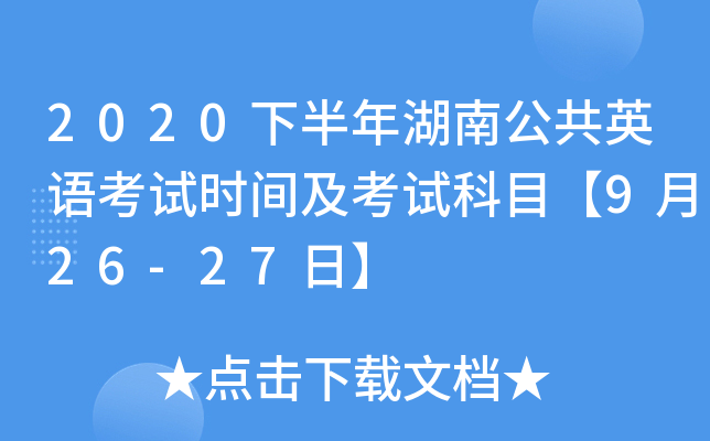 【#公共英语等级考试# #2020下半年湖南公共英语考试时间及考试科目【9月26-27日】#】®无忧考网从《2020下半年全国英语等级考试网上报名的通知》得知,2020下半年湖南公共英语考试时间及考试科目已公布,9月26-27日举行考试,考试级别为一级、二级、三级、四级,具体详情如下: