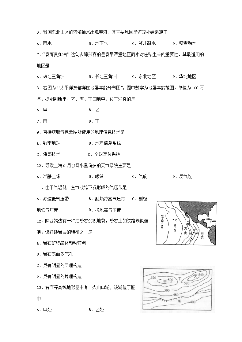 【文档名称】 2013年上海普通高中会考地理真题及答案(Word版).doc