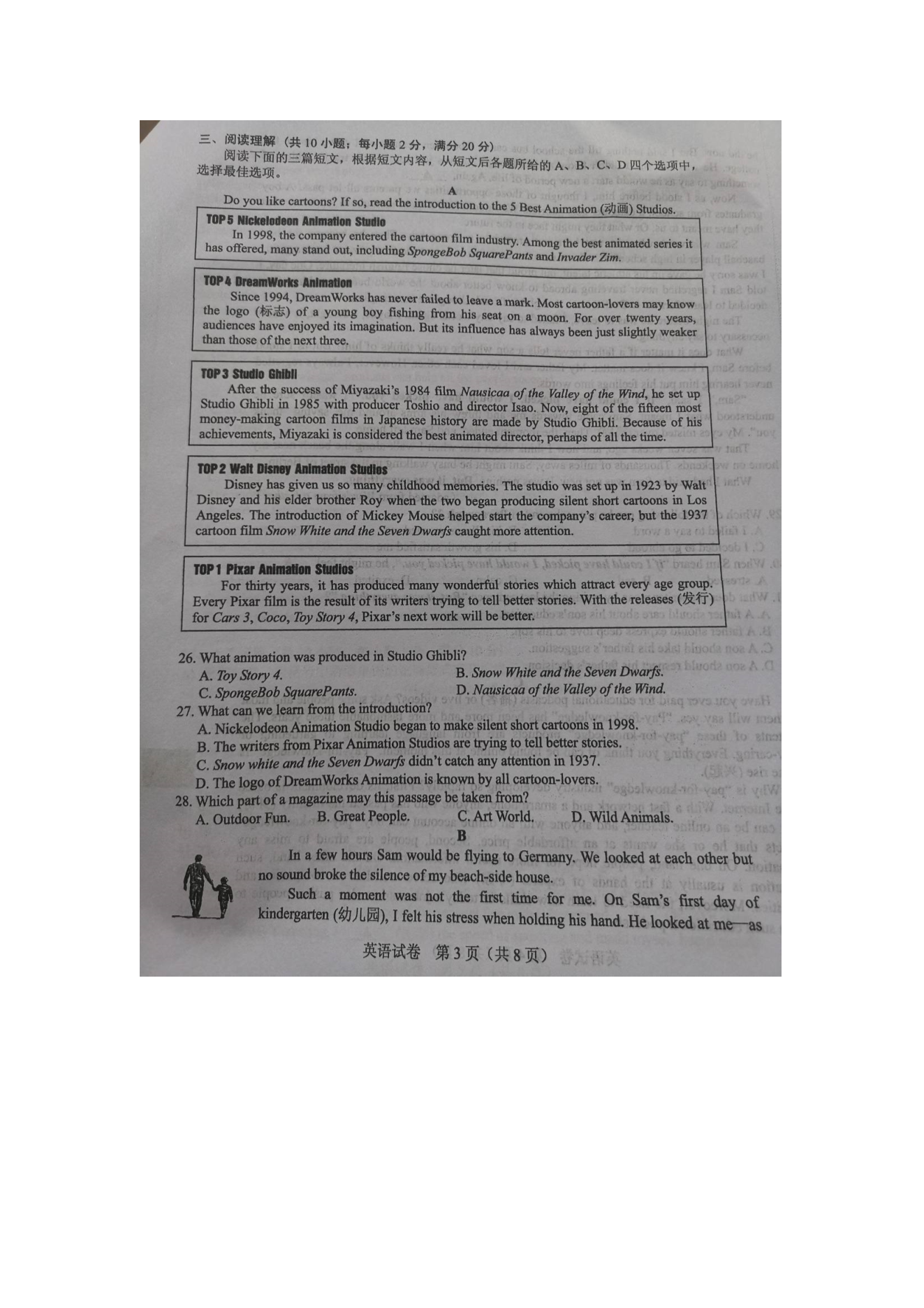 【文档预览】 无忧考网整理发布2020年江苏镇江中考英语真题及答案(图片版),前五页预览如下: