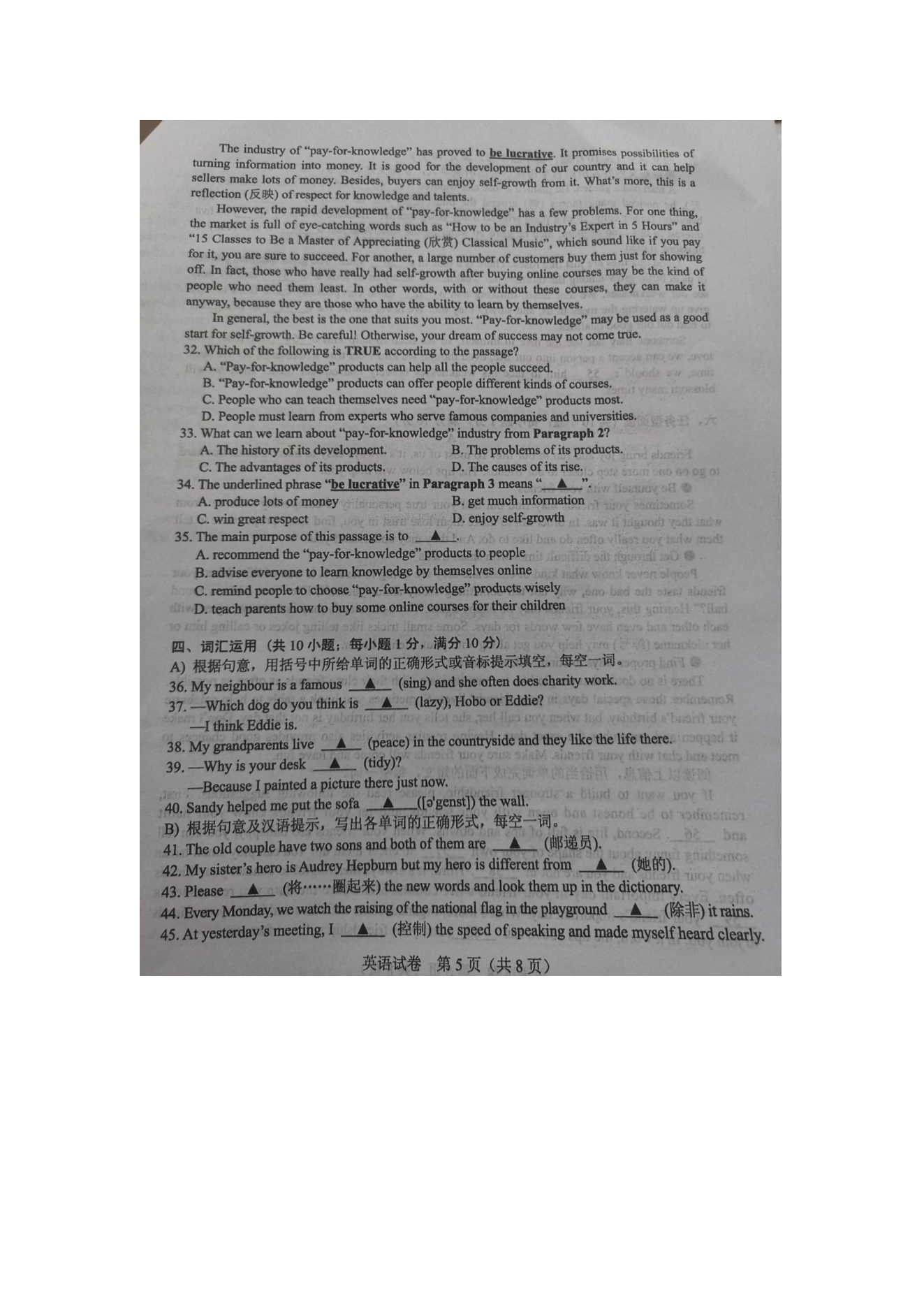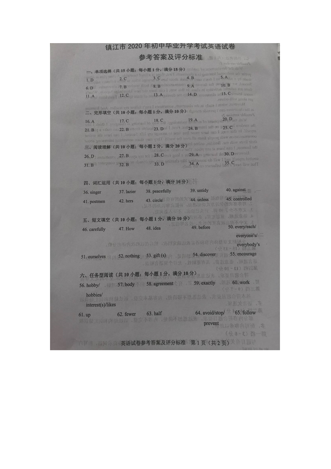 【文档名称】 2020年江苏镇江中考英语真题及答案(图片版).doc
