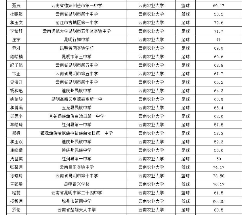 从云南省招生考试院了解到,2020年云南省高水平运动队拟录取资格名单已公示,为方便考生查阅,现将有关人员名单公布如下: