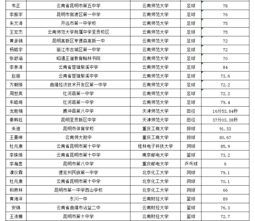 网从云南省招生考试院了解到,2020年云南省高水平运动队拟录取资格名单已公示,为方便考生查阅,现将有关人员名单公布如下: