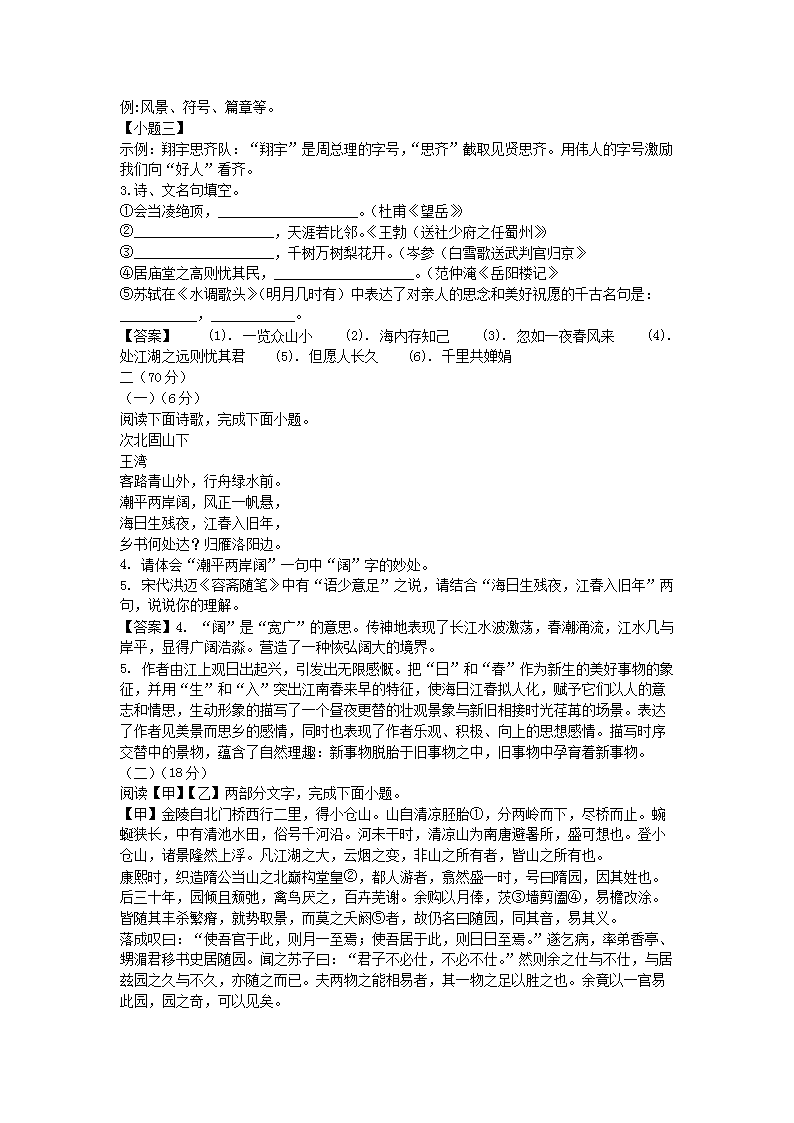 【文档名称】 2020年江苏淮安中考语文真题及答案(Word版).doc