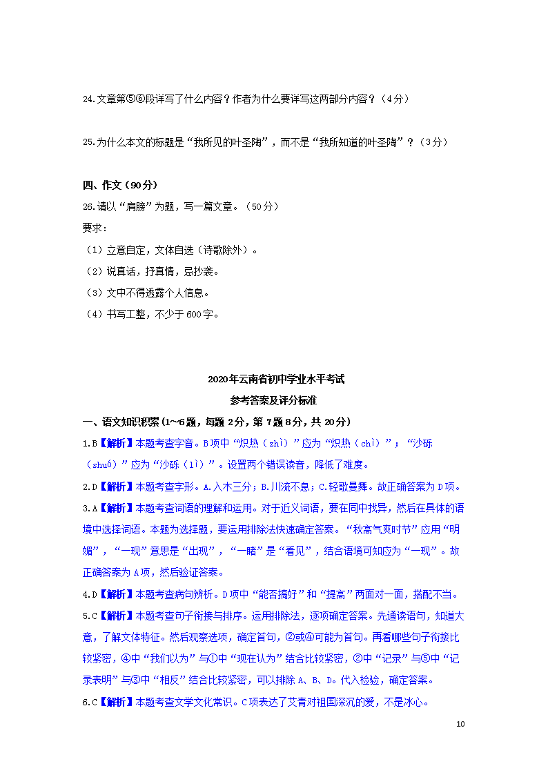 【文档名称】 2020年云南玉溪中考语文真题及答案(Word版).doc