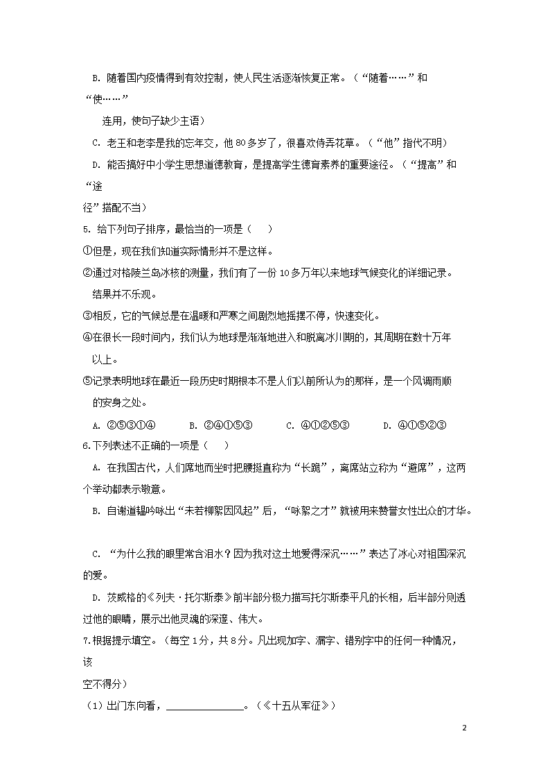 【文档预览】 无忧考网整理发布2020年云南临沧中考语文真题及答案(Word版),前五页预览如下: