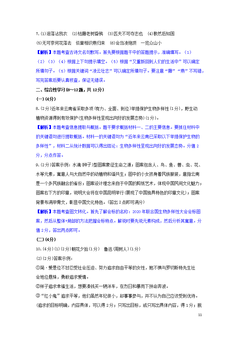 【文档名称】 2020年云南迪庆中考语文真题及答案(Word版).doc