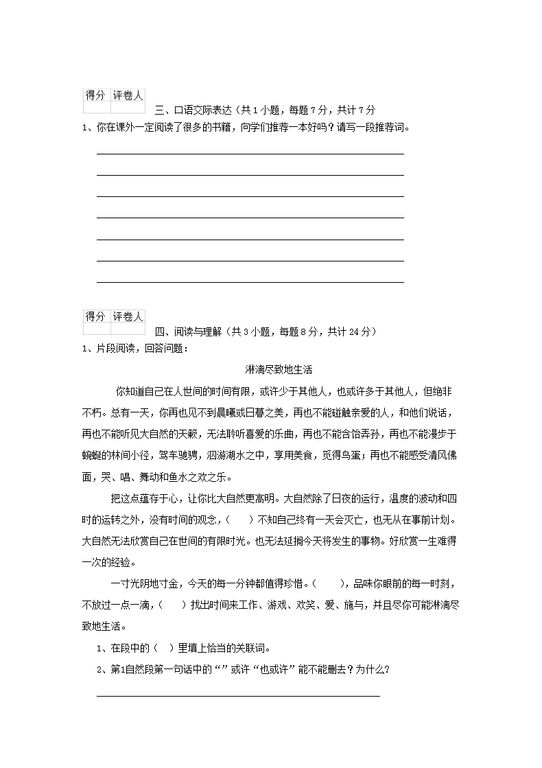 【文档预览】 无忧考网整理发布2019年河南小升初语文真题及答案(Word版),前五页预览如下:
