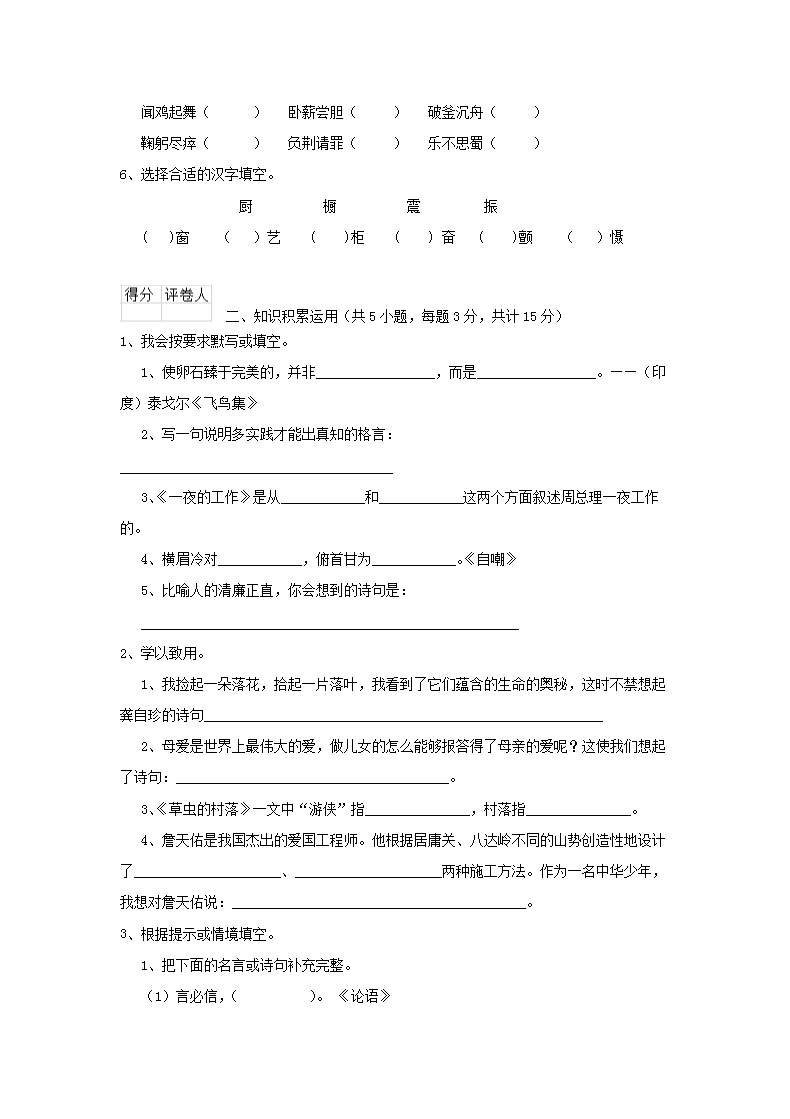 【文档名称】 2019年河南小升初语文真题及答案(Word版).doc
