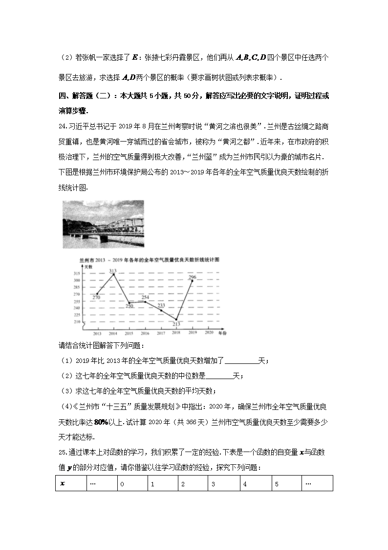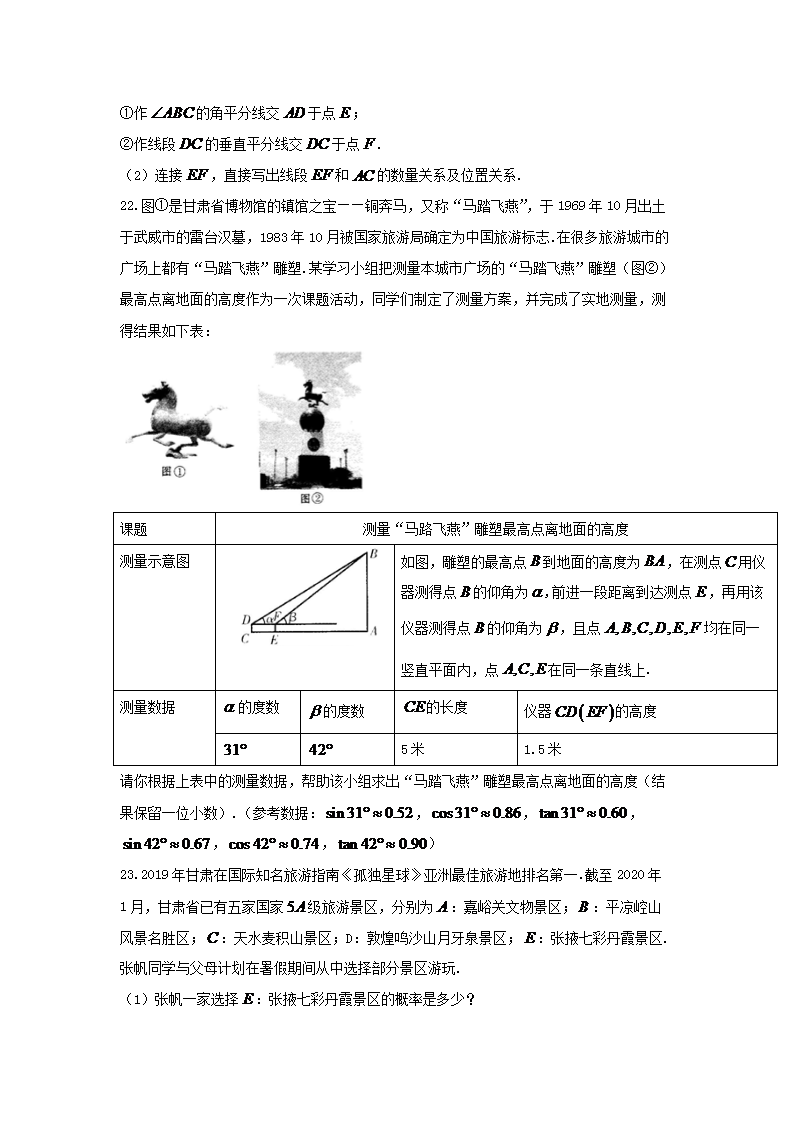 【文档名称】 2020年甘肃金昌中考数学真题及答案(Word版).doc