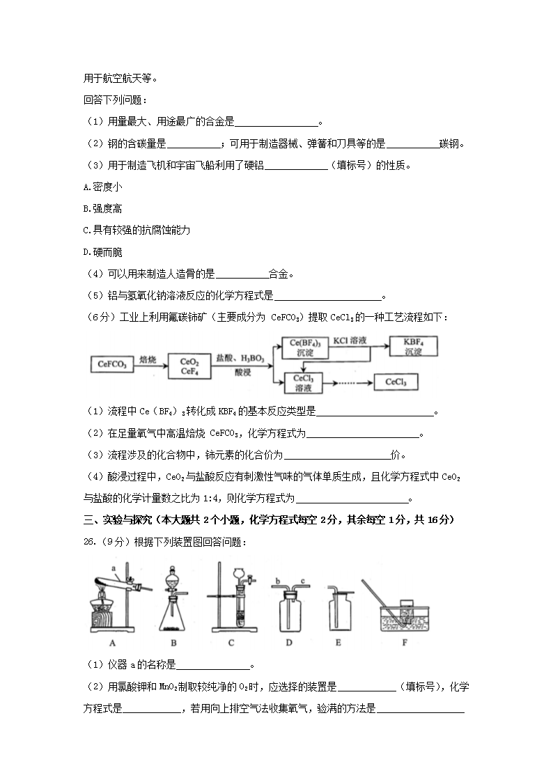 【文档名称】 2020年云南昆明中考化学真题及答案(Word版).doc