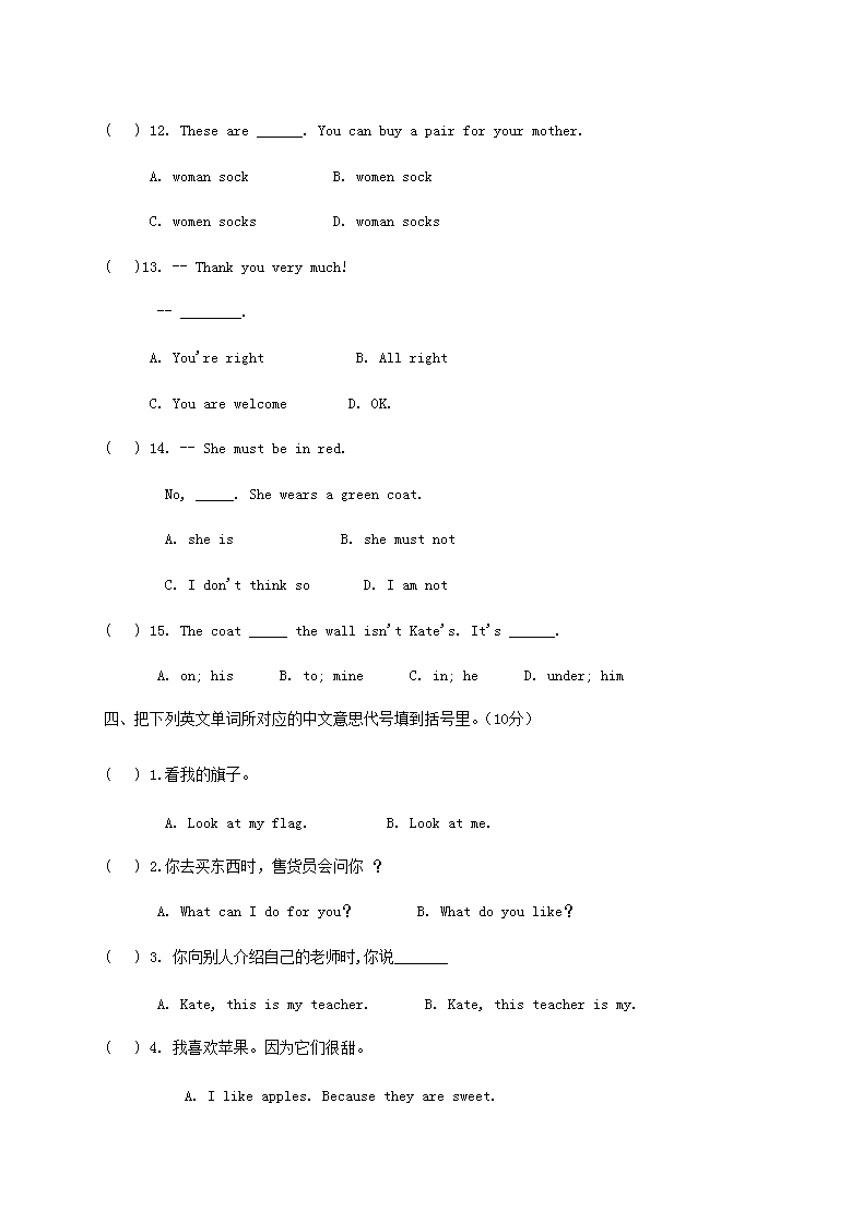 【文档预览】 无忧考网整理发布2018年河南小升初英语真题及答案(Word版),前五页预览如下: