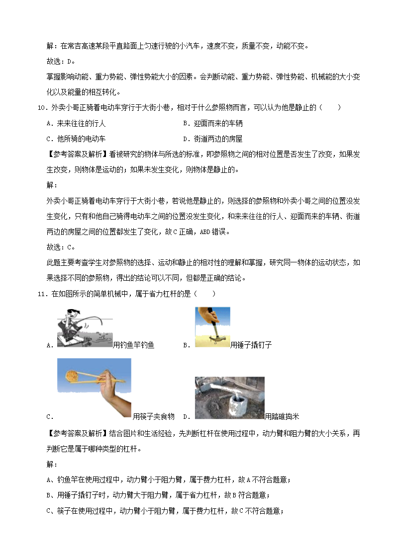 【文档名称】 2020年湖南湘西中考物理试题及答案(Word版).doc