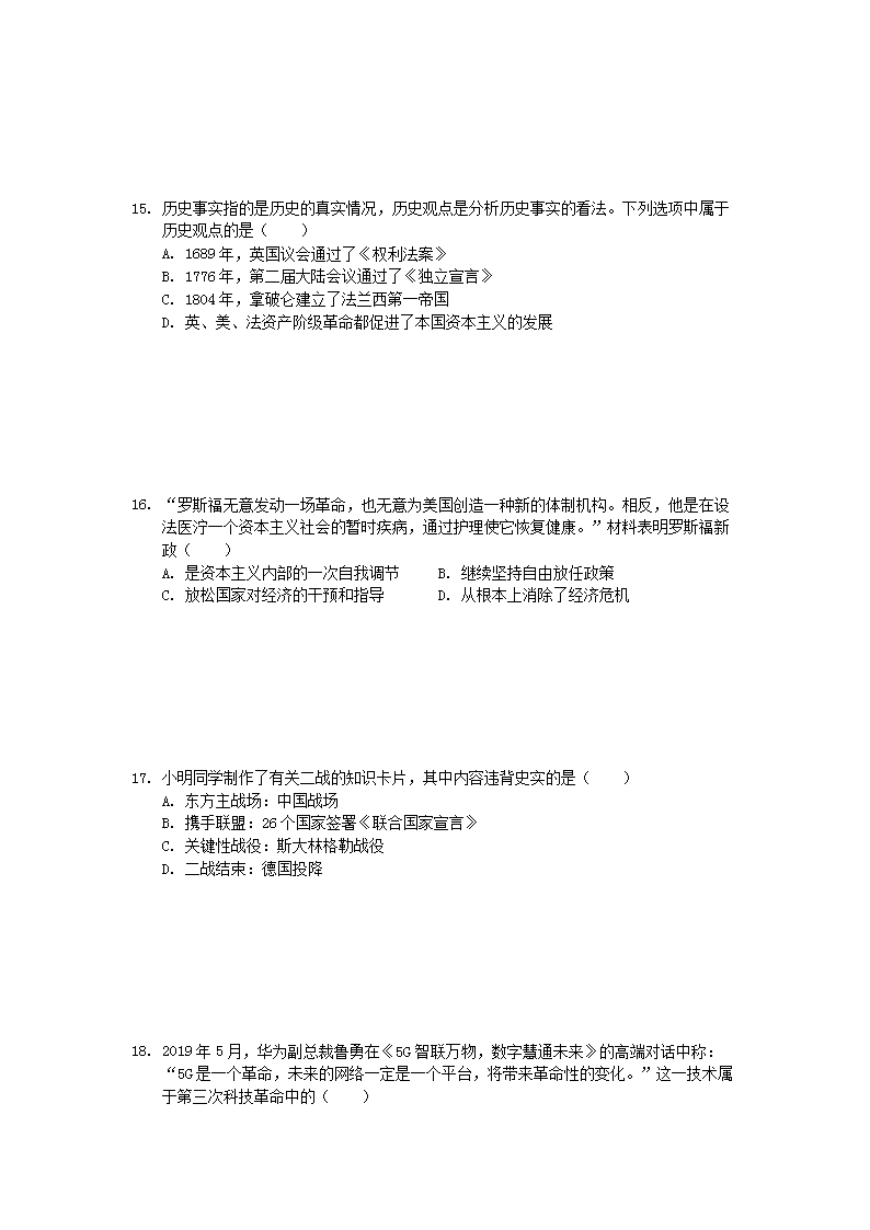 【文档预览】 无忧考网整理发布2019江苏省泰州市中考历史真题及答案(Word版),前五页预览如下: