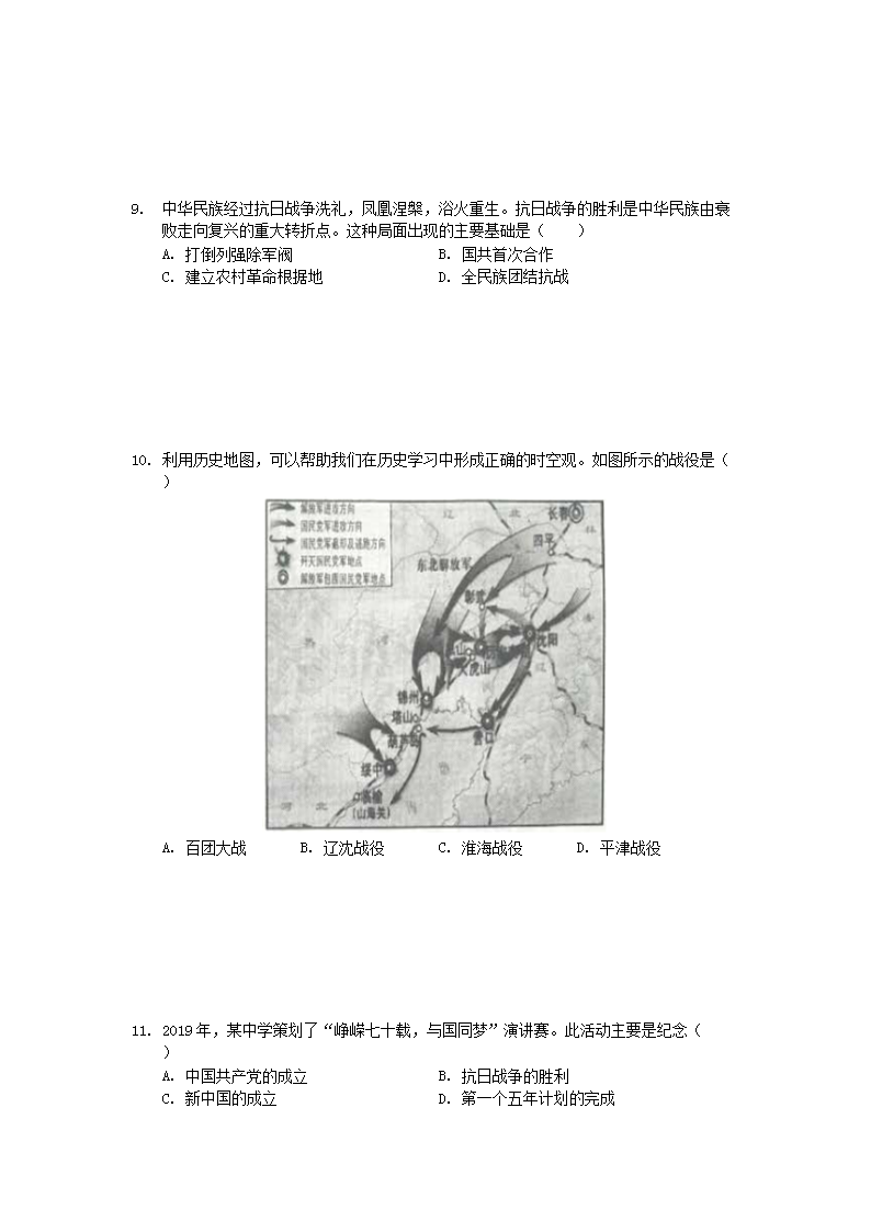 【文档名称】 2019江苏省泰州市中考历史真题及答案(Word版).doc