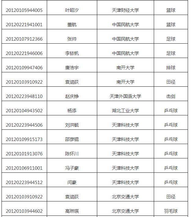 从天津招考资讯网了解到,2020年普通高校在天津招收高水平运动队测试合格考生名单已公示,为方便考生,现将有关人员名单公布如下: