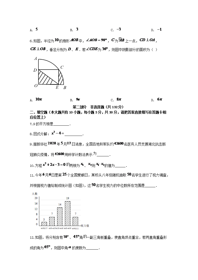 【文档名称】 2020年江苏泰州中考数学真题及答案(Word版).doc