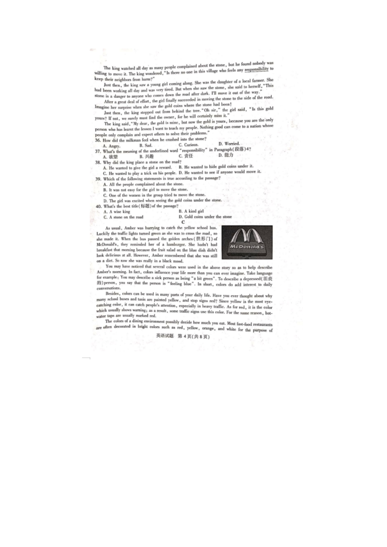 【文档名称】 2020年江苏泰州中考英语真题及答案(图片版).doc
