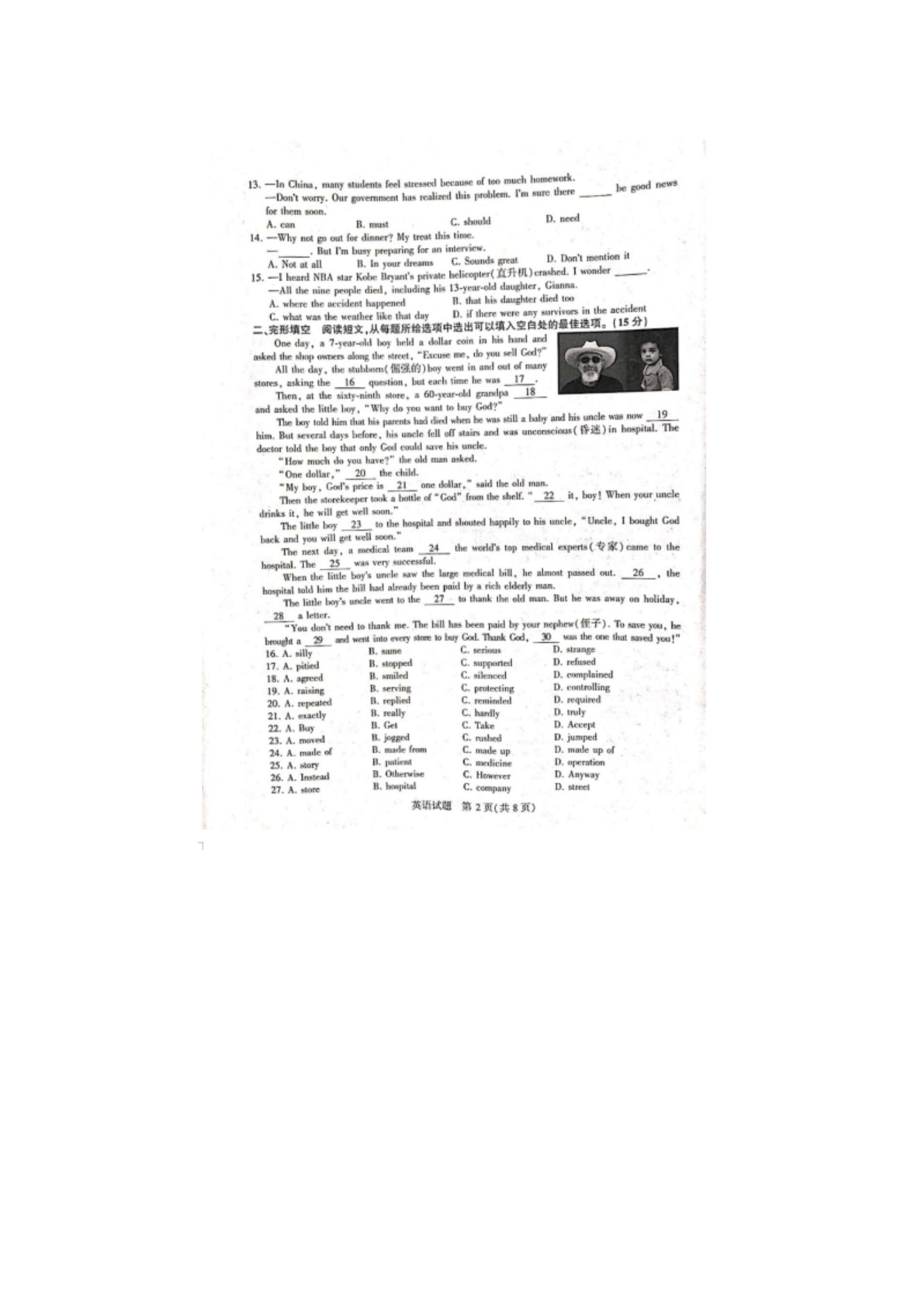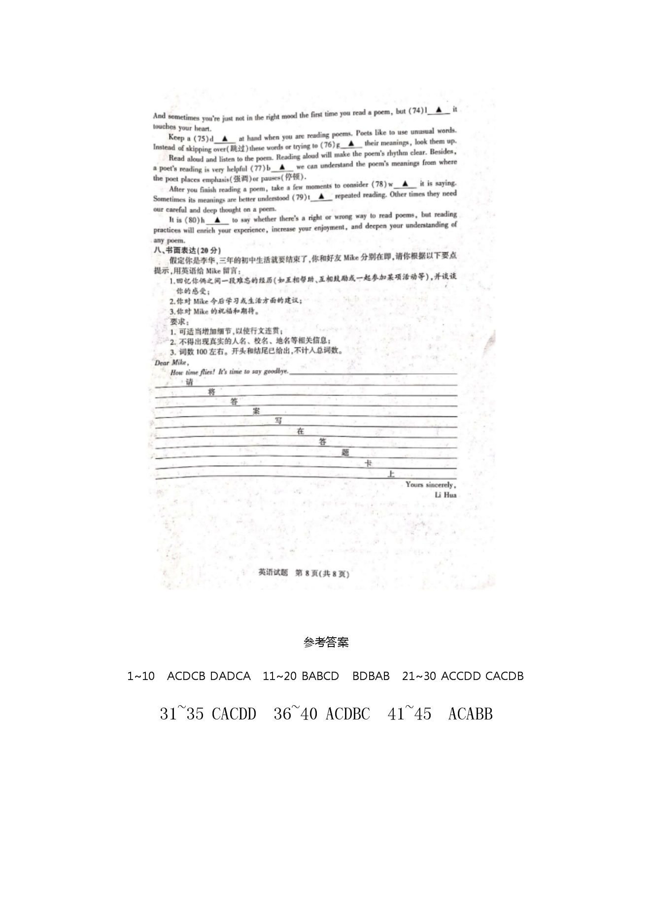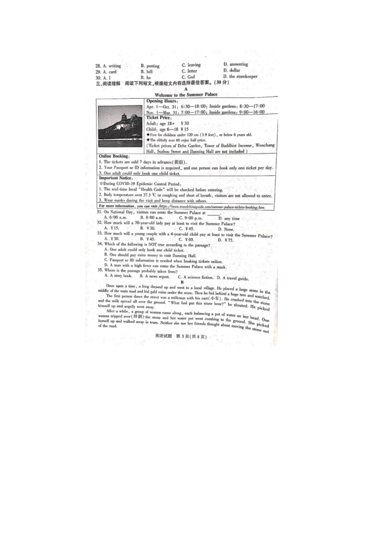 【文档预览】 无忧考网整理发布2020年江苏泰州中考英语真题及答案(图片版),前五页预览如下:
