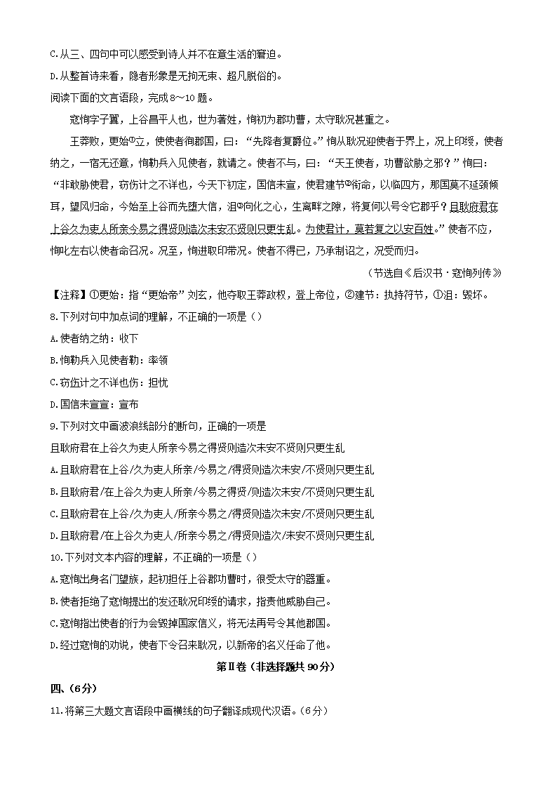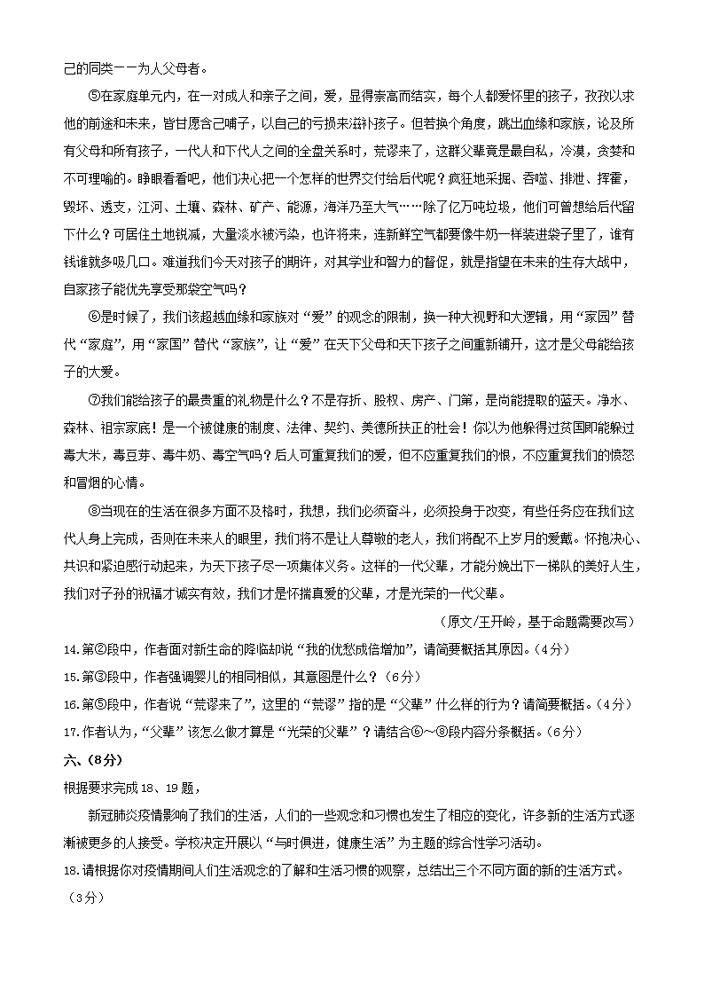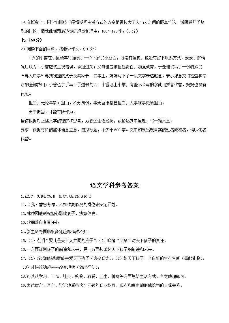【文档名称】 2020年湖北武汉中考语文试题及答案(Word版).doc