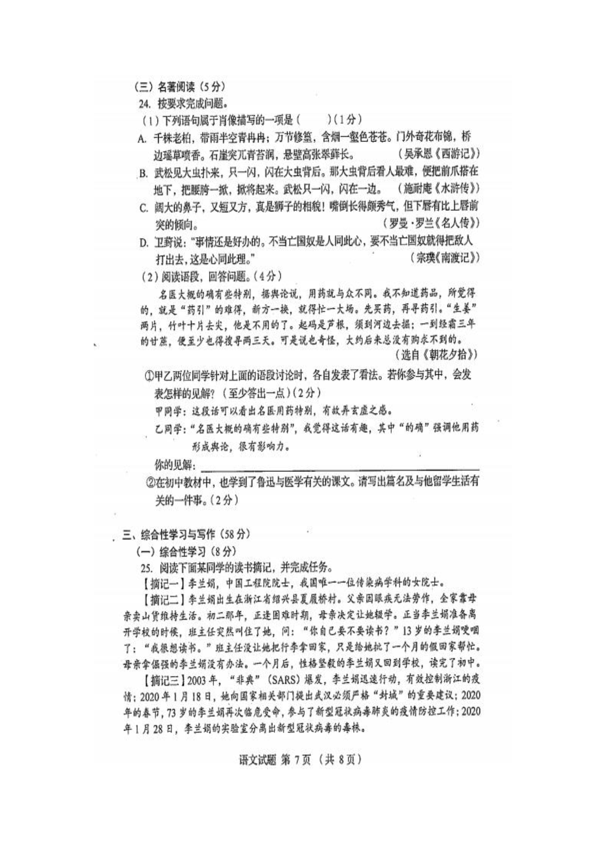 【文档名称】 2020年吉林四平中考语文真题及答案(图片版).doc