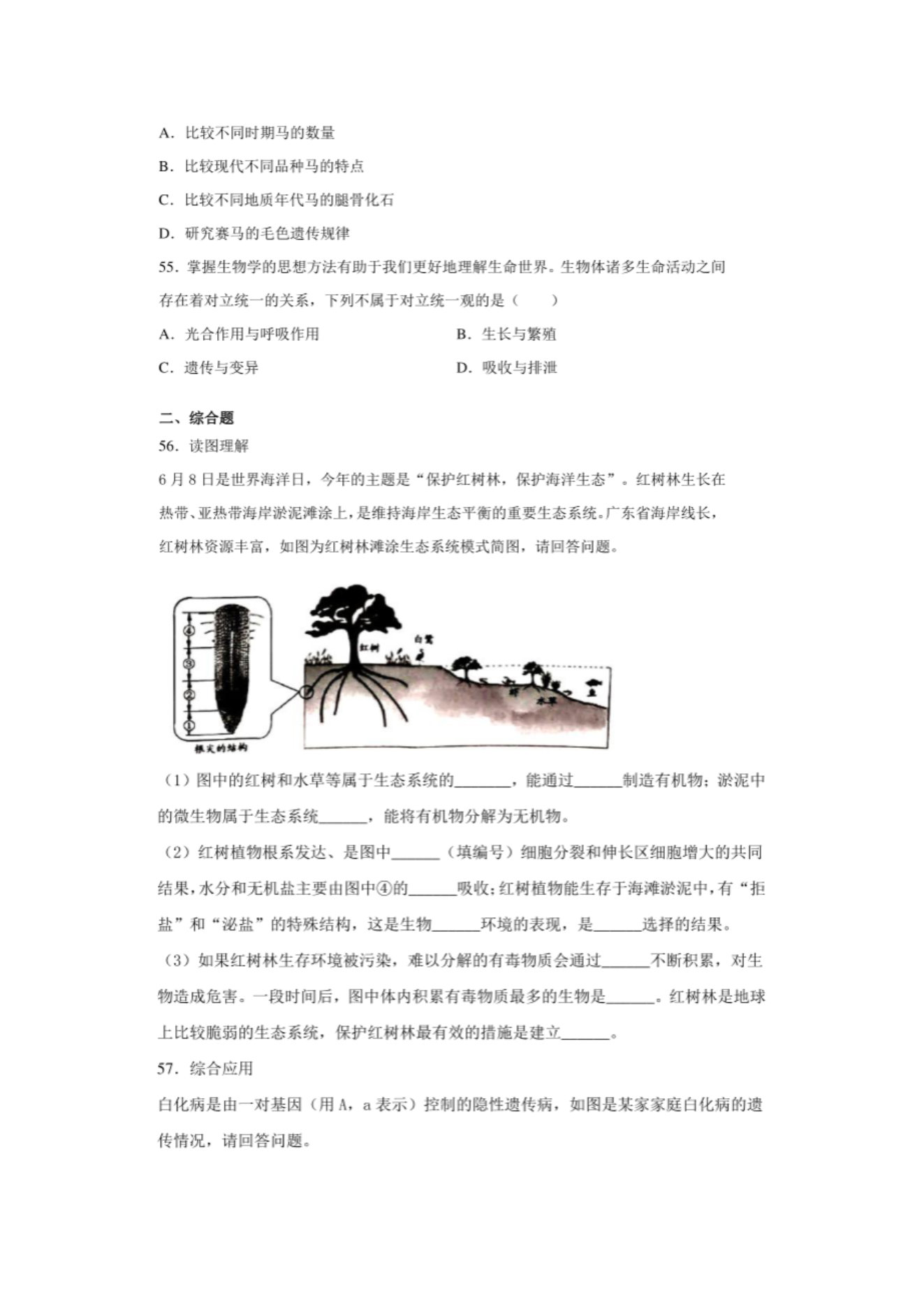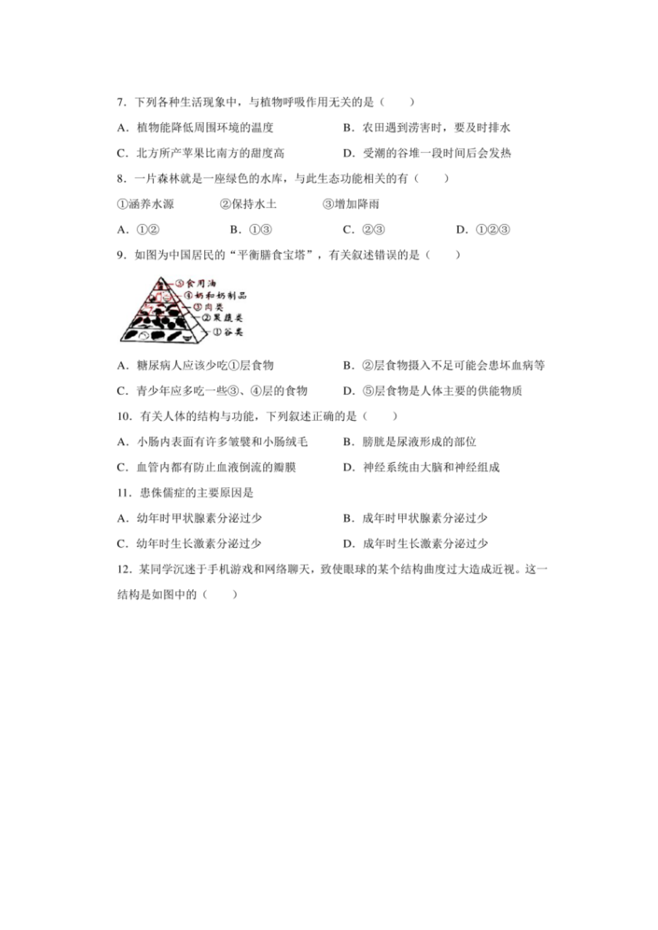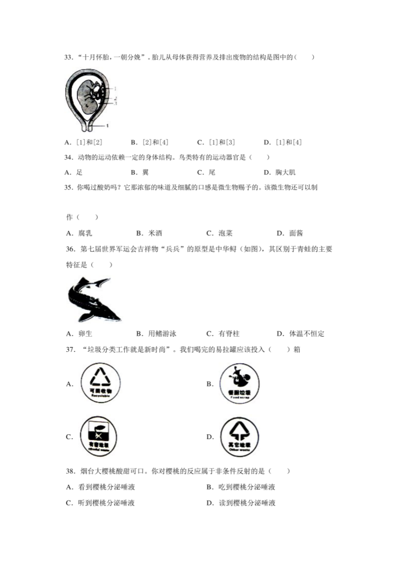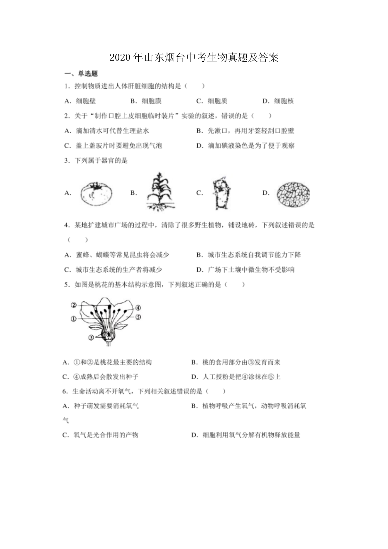 【文档名称】 2020年山东烟台中考生物真题及答案(图片版).doc