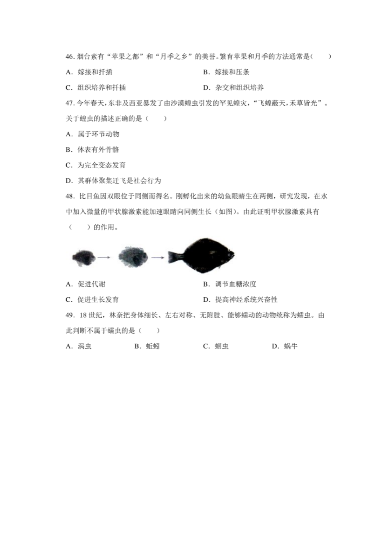 【文档预览】 无忧考网整理发布2020年山东烟台中考生物真题及答案(图片版),前五页预览如下: