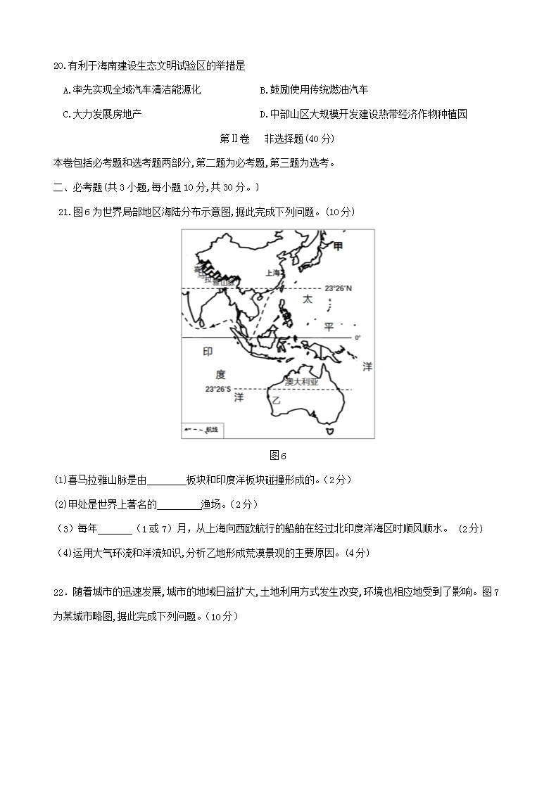 【文档名称】 2018年海南普通高中会考地理真题及答案(Word版).doc