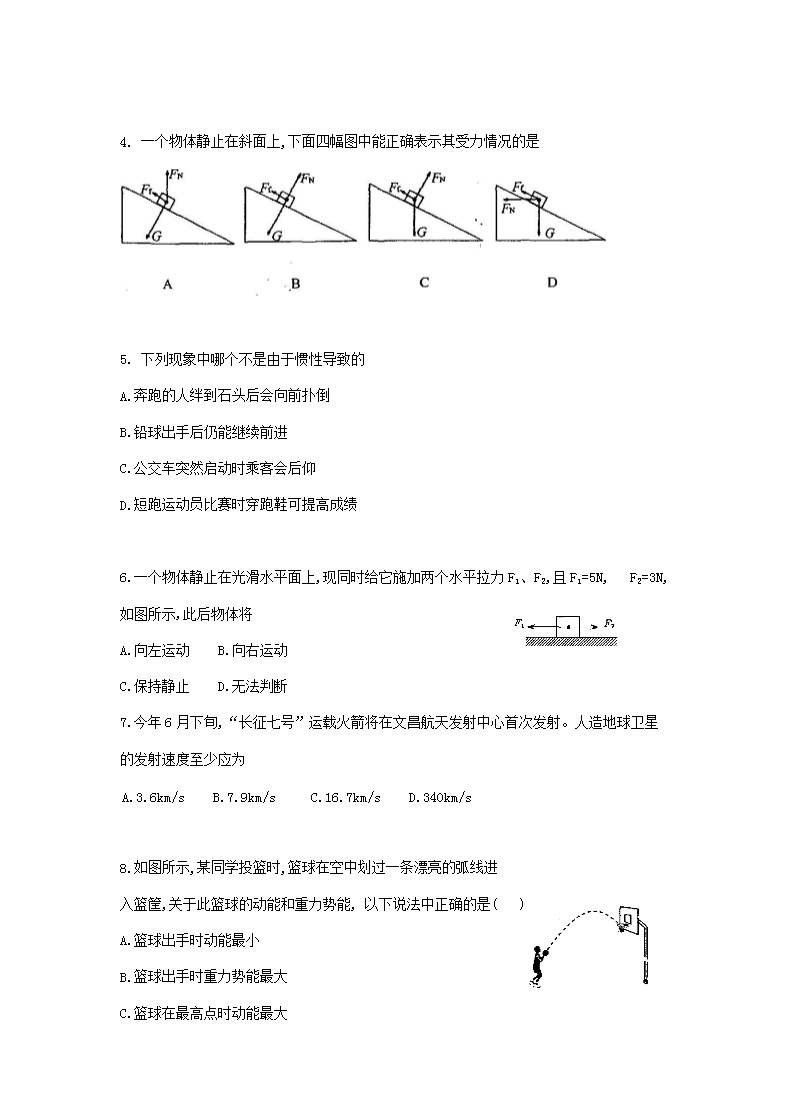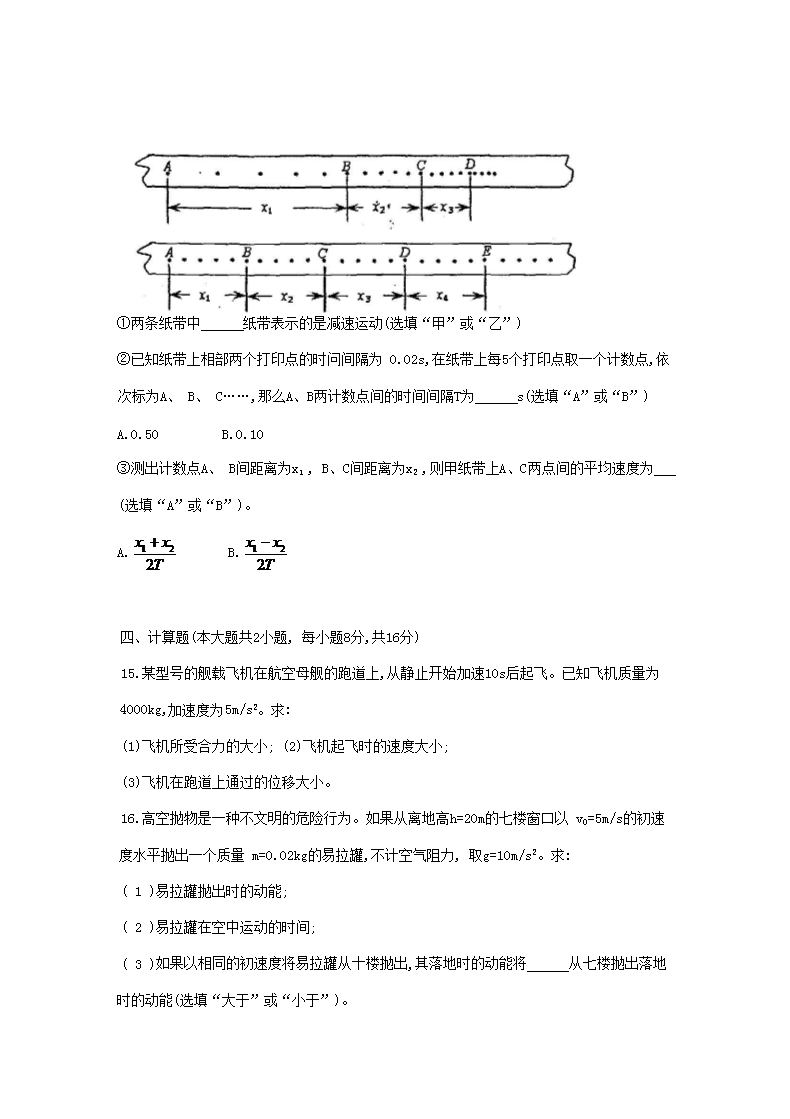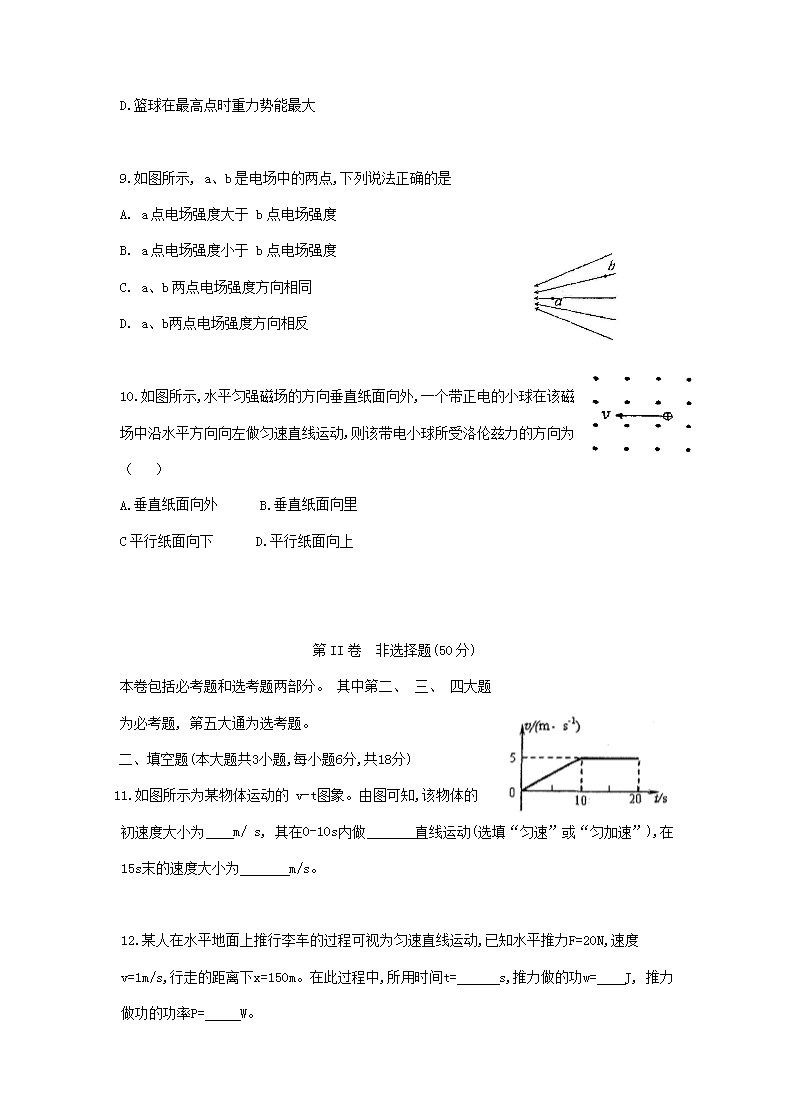【文档名称】 2016年海南普通高中会考物理真题及答案(Word版).doc
