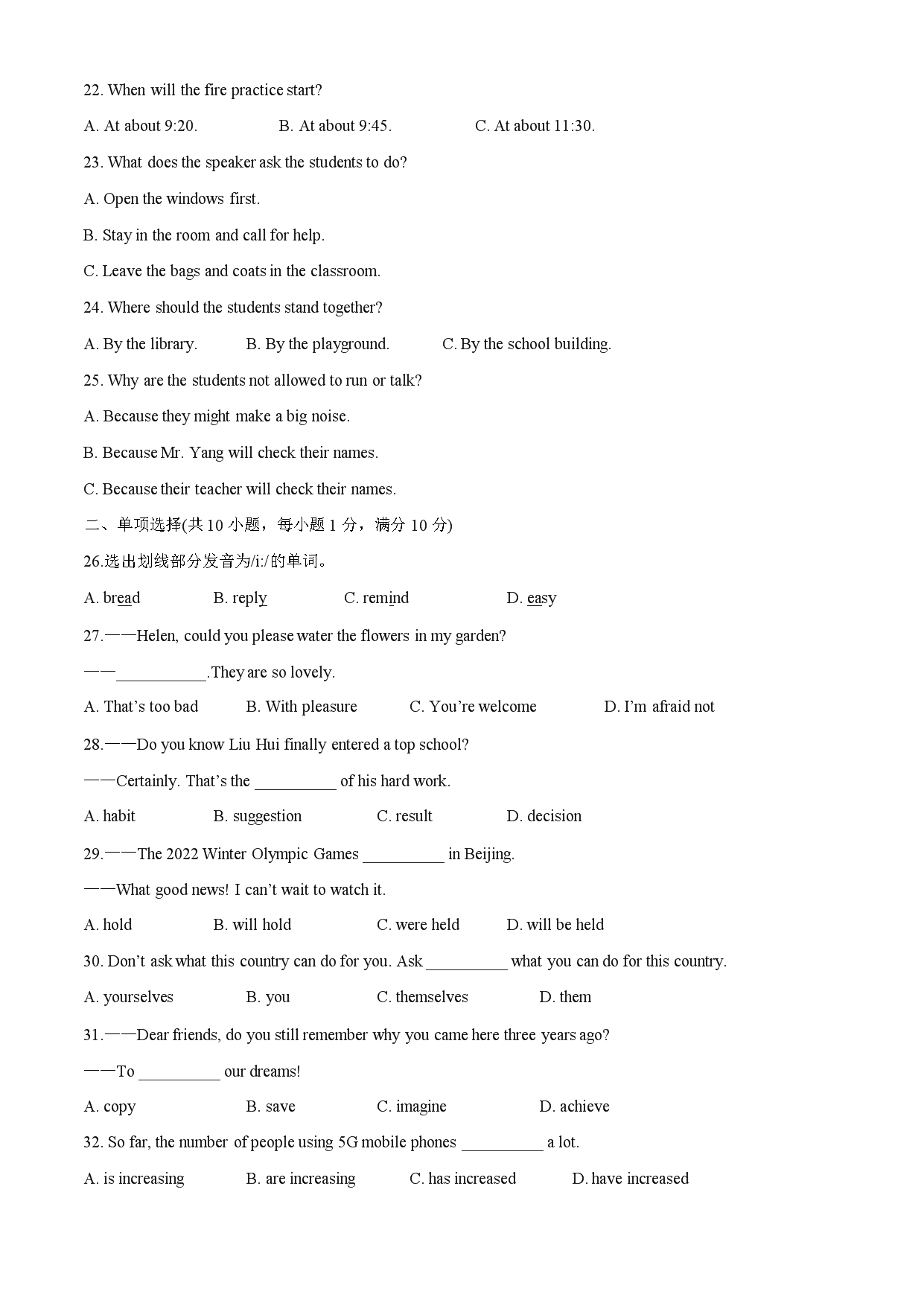 【文档名称】 2020年湖北孝感中考英语试题及答案(Word版).doc