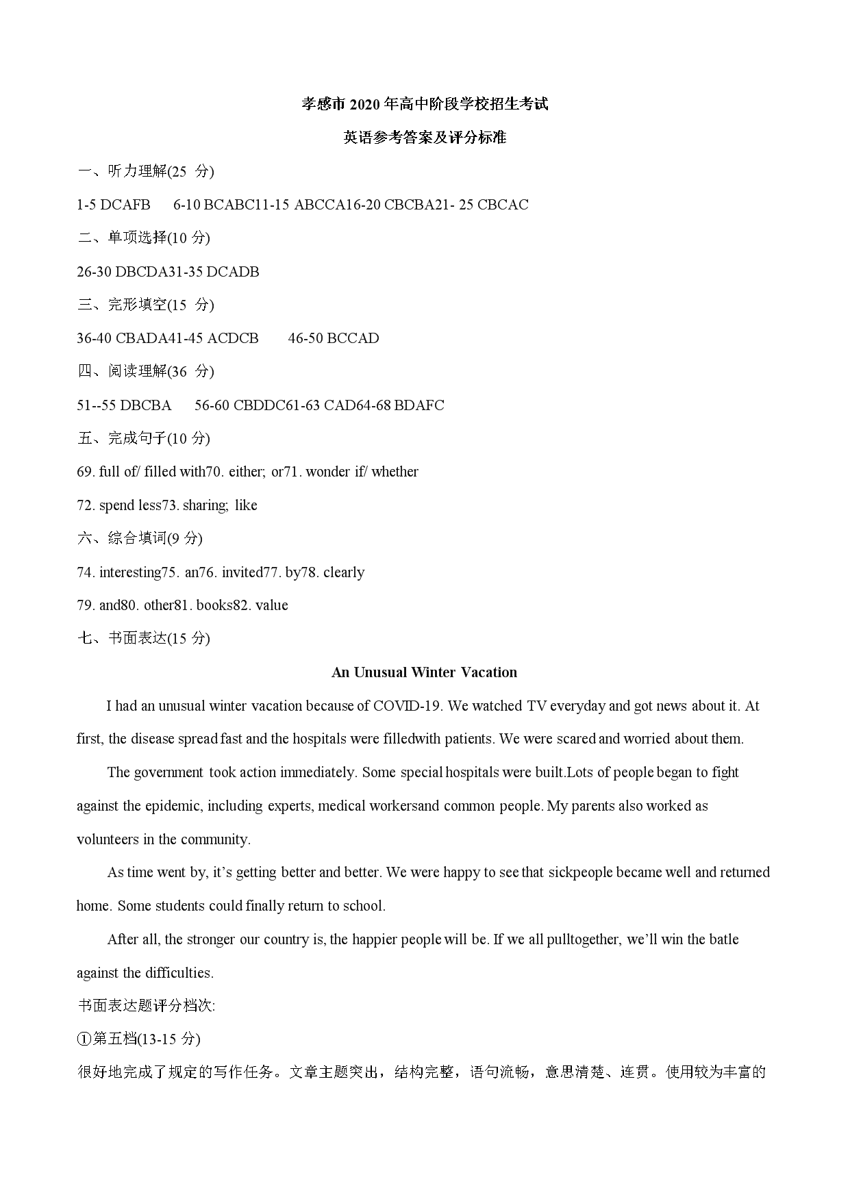 【文档预览】 无忧考网整理发布2020年湖北孝感中考英语试题及答案(Word版),前五页预览如下: